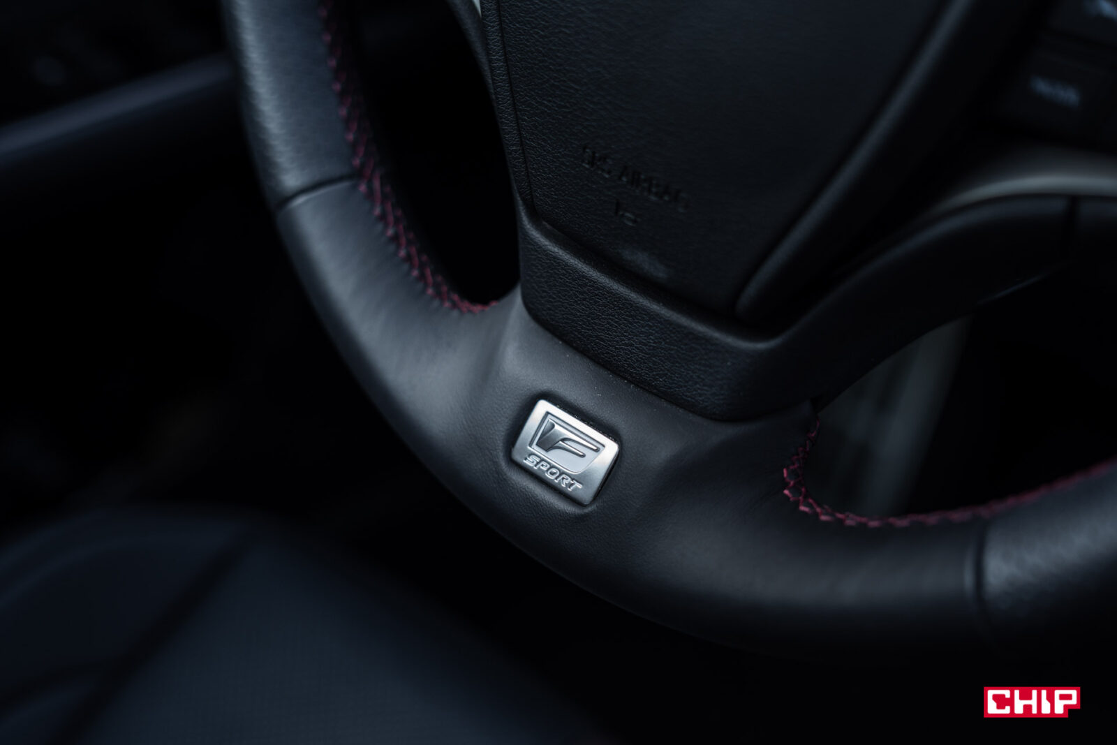 Z boku zwróćmy uwagę na nadkola. Symetryczne z przodu i z tyłu. W przedniej części zaokrąglone, w tylnej kanciaste. Do tego ładne przetłoczenia, ale szczególną uwagę przyciąga górne. Biegnie wzdłuż przedniej klamki, ale przebiega nad tylną. Dodatkowo klamka tylnych drzwi jest umieszczona wyraźnie wyżej niż przednia. To raczej norma, ale różnica wysokości nie zawsze jest aż tak duża. 18-calowe felgi pakietu F-Sport idealnie pasują rozmiarem do auta. Nie są też zbyt duże, do miasta jak znalazł, trudniej je zarysować o krawężnik.