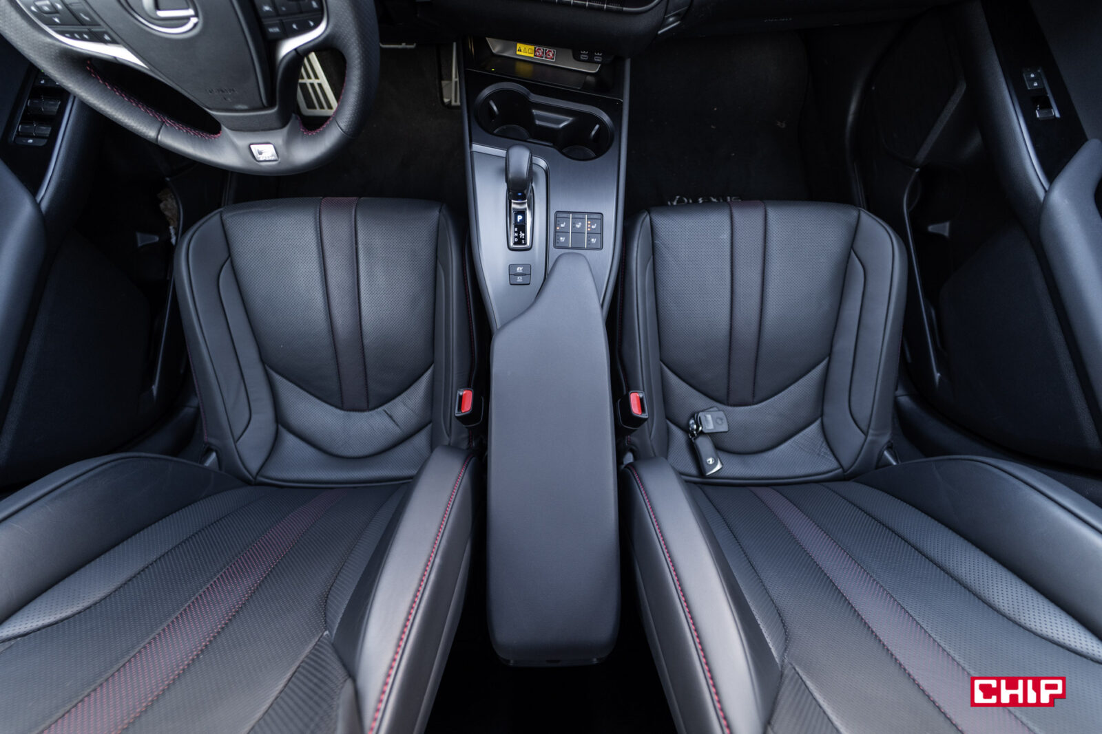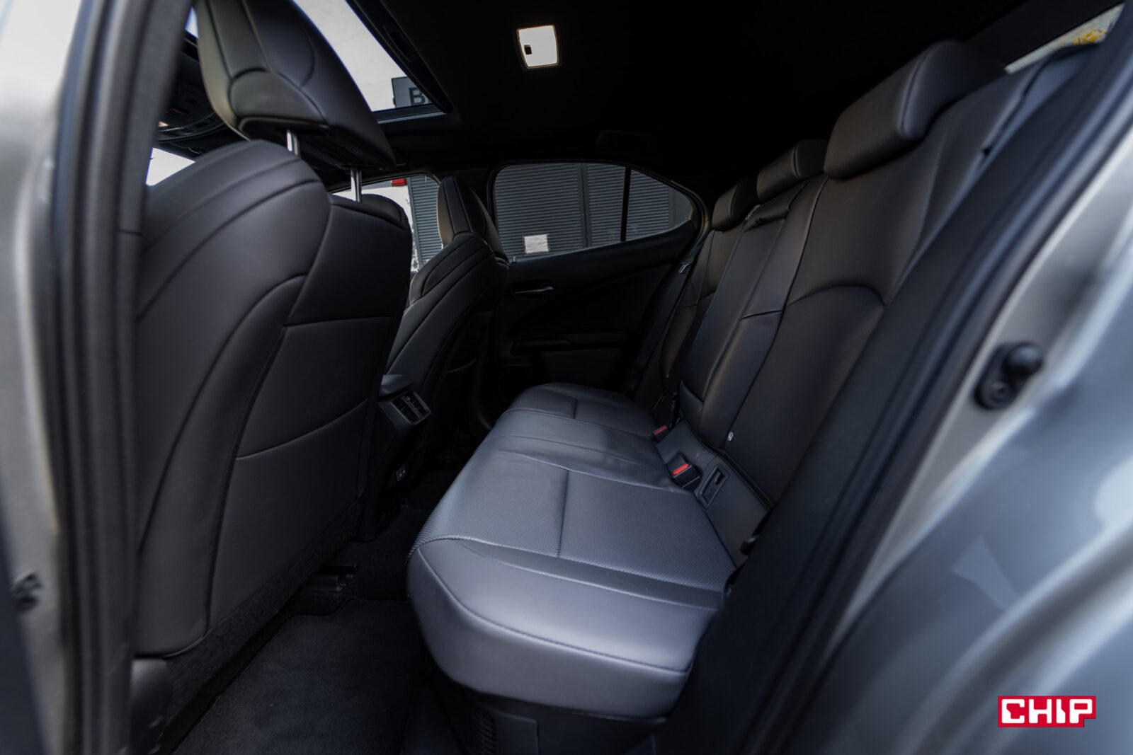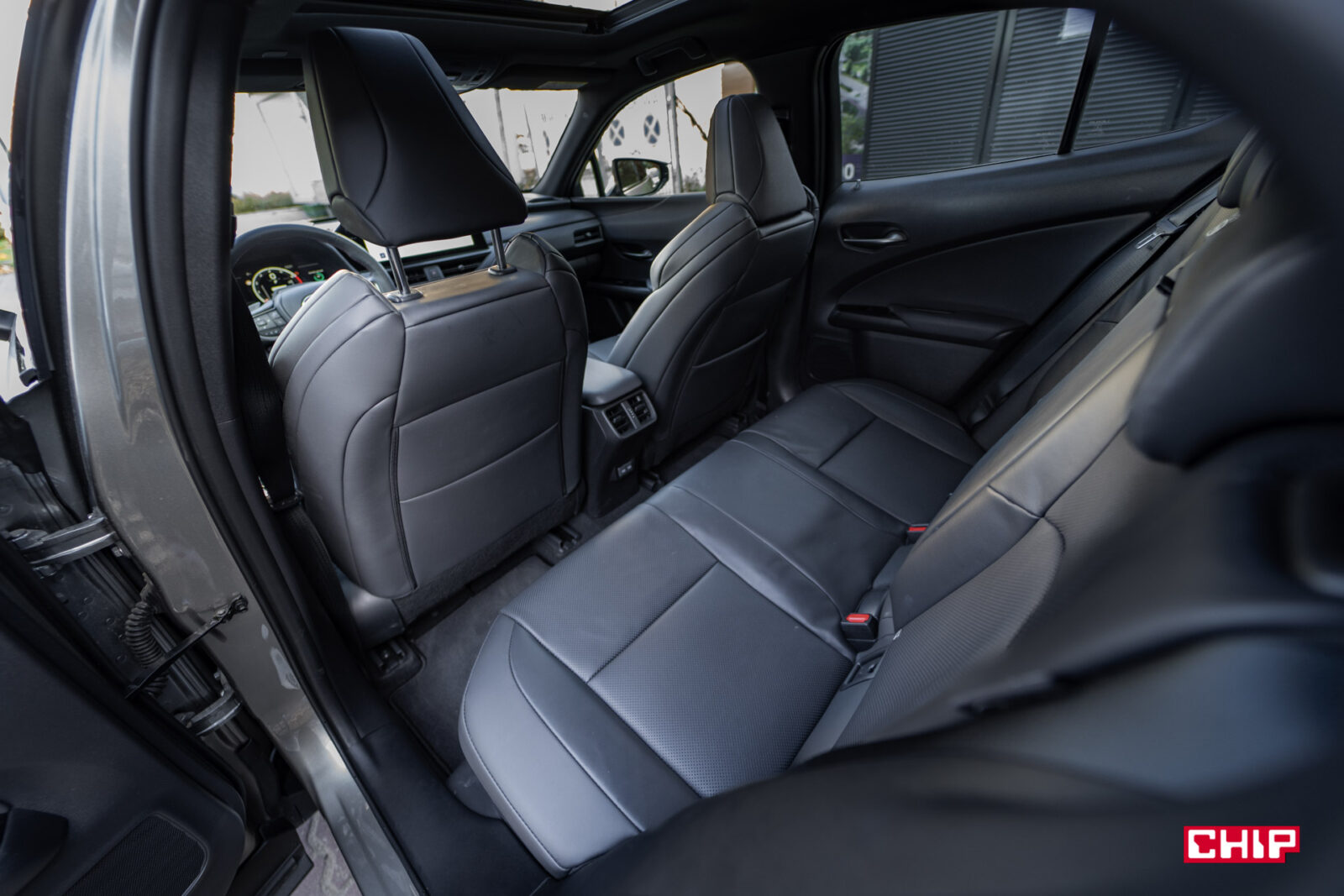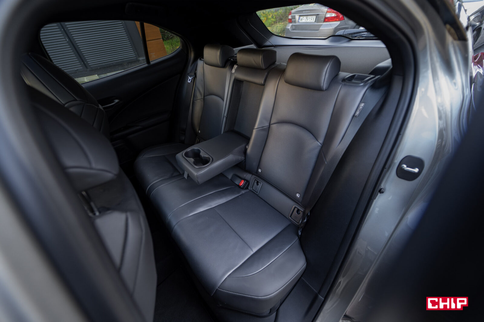 Wadą Lexusa UX 300h jest niestety to, że tu jest zwyczajnie ciasno. Z przodu jest znośnie. Choć jesteśmy dosyć szczelnie obudowani i tu ponownie odnosząc się do nowego Toyoty C-HR, jest tu nieco więcej przestrzeni. Za to z tyłu…