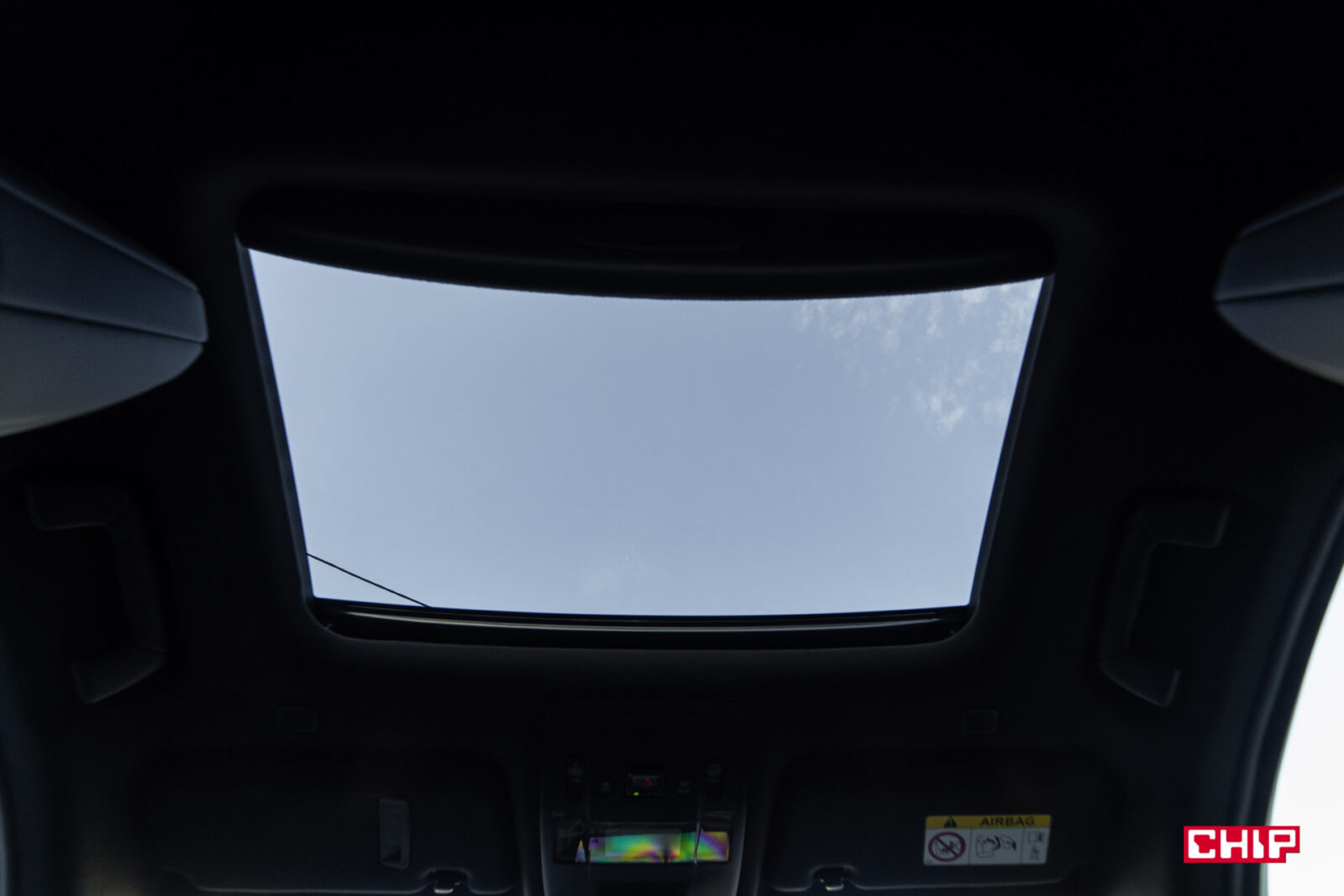 Bardzo zaciekawiło mnie okno dachowe. Z jednej strony sterowane elektrycznie i mamy do tego aż dwa przyciski – jeden do uchylania okna, drugi do jego przesuwania. Ale już roletę, podobnie jak w nowym Priusie, zasłaniamy i odsłaniamy manualnie.