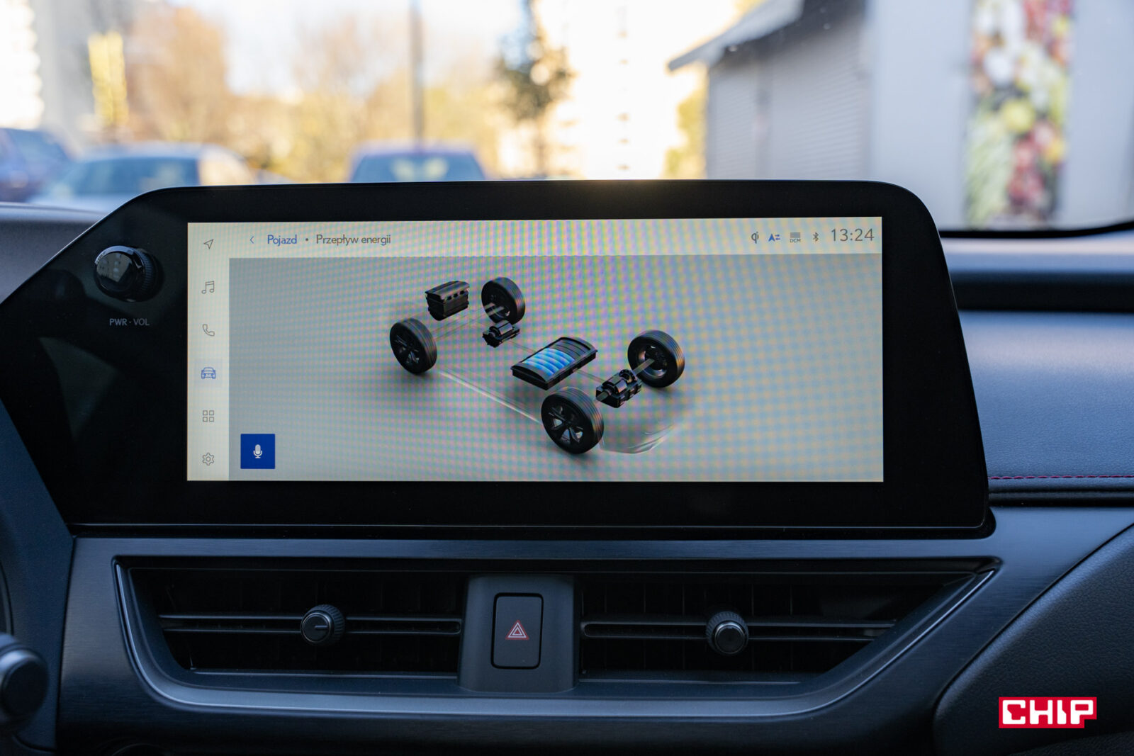 Lexus i Toyota współdzielą ze sobą interfejs, ale choć jest on identyczny w obu markach, tak wyraźnie różni się od siebie pod względem funkcji i obsługi. W Lexusie sterowanie całym autem odbywa się za pomocą ekranu głównego. To zdecydowanie wygodniejsze rozwiązanie, bo wszystko mamy w jednym miejscu.