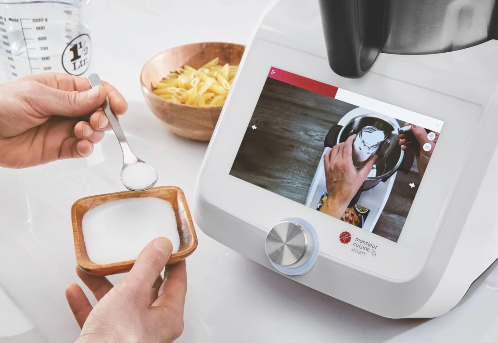 Monsieur Cuisine Smart to popularny robot kuchenny Lidla i zdecydowanie bardziej przyjazny dla portfela odpowiednik Termomixa. Został wyposażony w 8-calowy kolorowy ekran dotykowy, na którym będziemy mogli dostosować funkcje urządzenia, zapoznać się z instrukcjami krok po kroku i oczywiście z przepisami. Baza przepisów jest ogromna i z nią możecie stać się prawdziwym szefem kuchni w swoim domu. Błyskawicznie przeliczymy składniki na dowolną liczbę porcji, a stworzonymi przez siebie recepturami będziemy mogli podzielić się z innymi użytkownikami. Dodatkowo MC Smart przyda się też podczas planowania posiłków i zakupów, ułatwiając proces przygotowywania do gotowania.