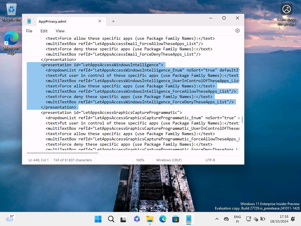 Skąd w ogóle takie informacje? Jest to plotka powstała na bazie tego, co jeden z użytkowników odnalazł w kodzie najnowszej kompilacji Windows 11, dostępnej dla uczestników programu Windows Insider. Z odkrycia wynika, że producent może pójść w ślady Apple, które swoją sztuczną inteligencję w urządzeniach nazwało po prostu Apple Intelligence.