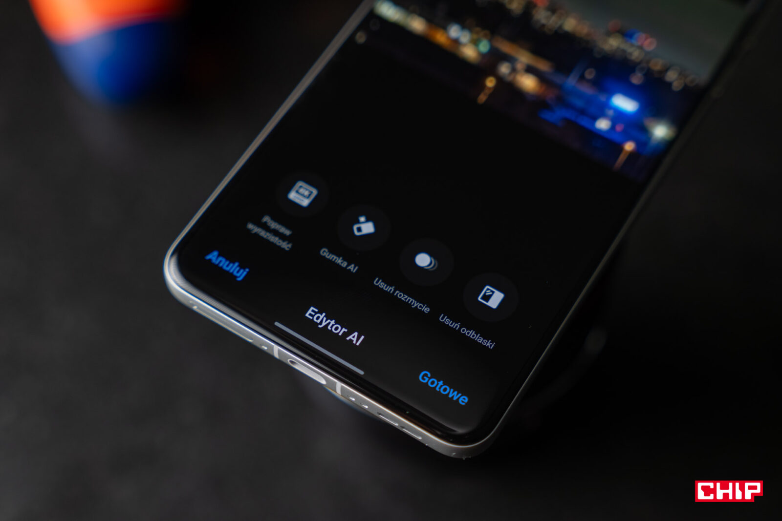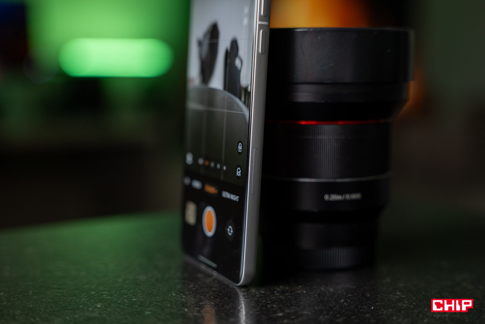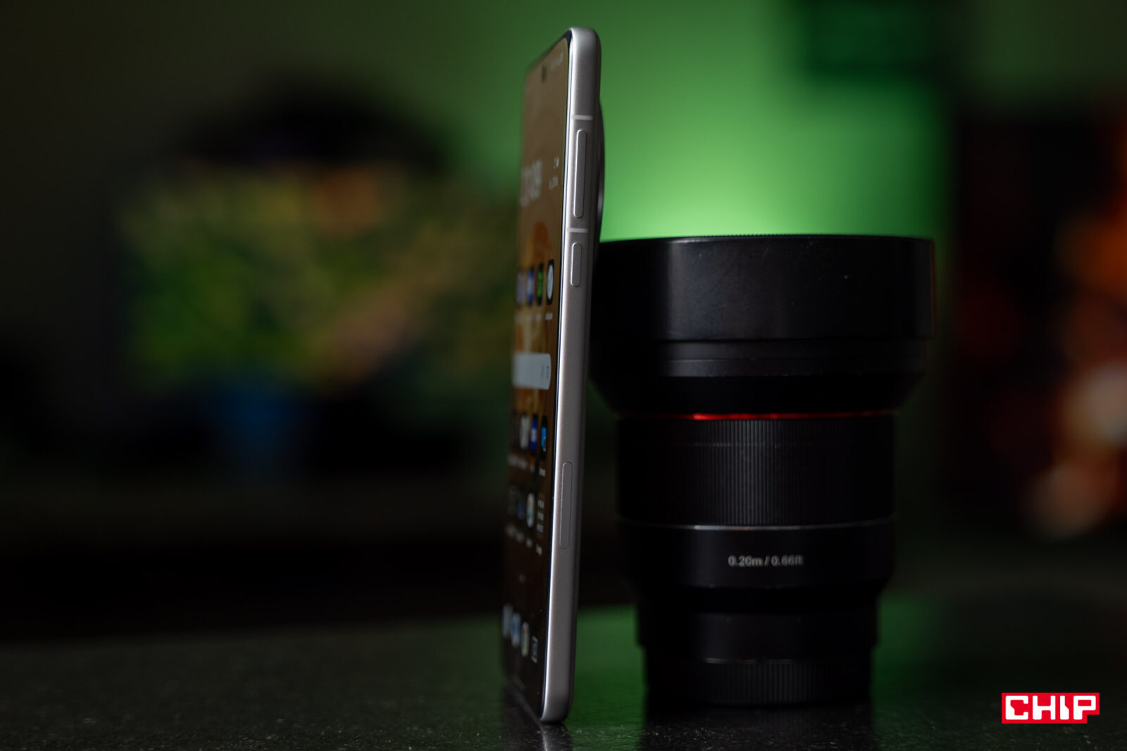 Zastanawia mnie, jak będę się czuł z przyciskami włączania oraz głośności, które na pierwszy rzut oka wydają się znajdować bardzo wysoko. Z pewnością taki układ wymusiło nie tylko umieszczenie prześwitów dla anten, ale i płytka dotykowa. Jest ona podobna do tego, co spotkamy w iPhonach z serii 16, ale też i gamingowych smartfonach z dodatkowymi triggerami. Nie ma ona jednak zastosowań powiązanych z grami. Podwójne dotknięcie wybudza aplikację aparatu, w której gestem przesunięcia możemy zmienić przybliżenie lub parametry w trybie Master.
