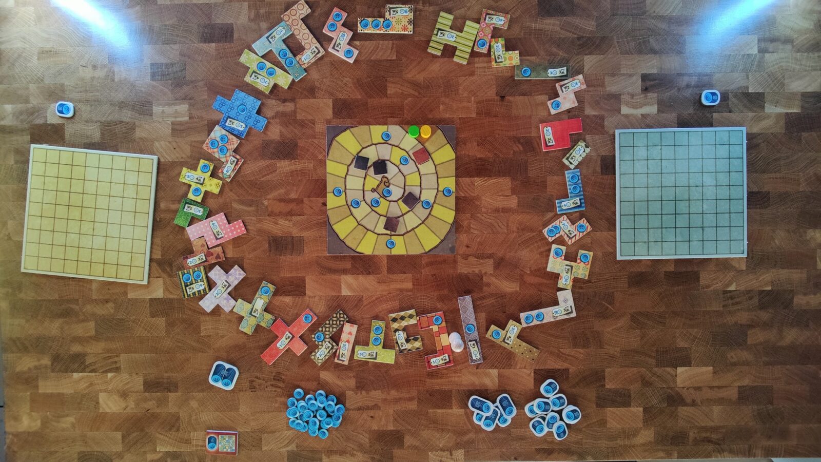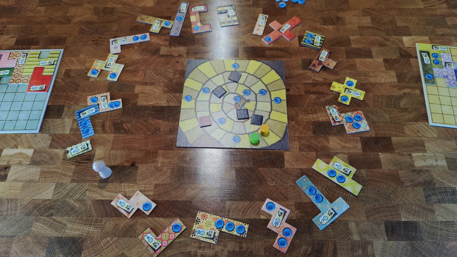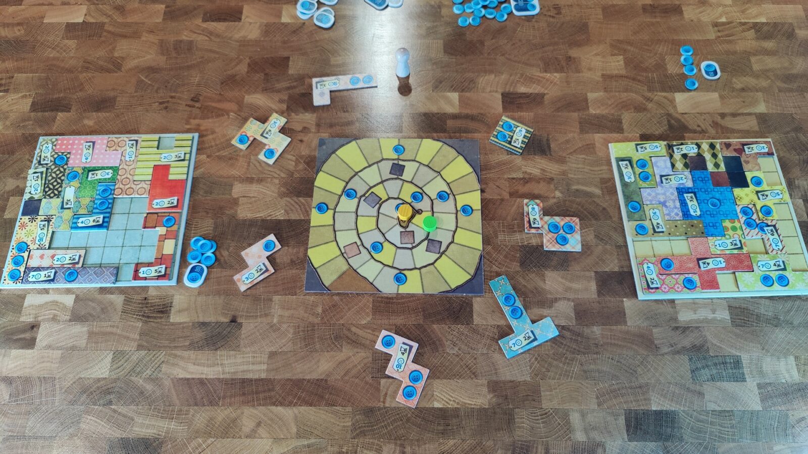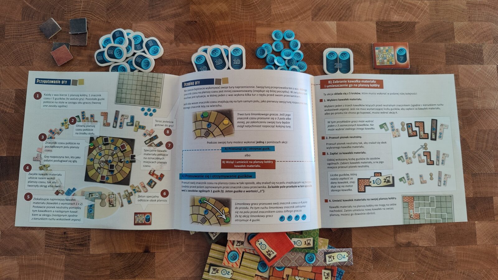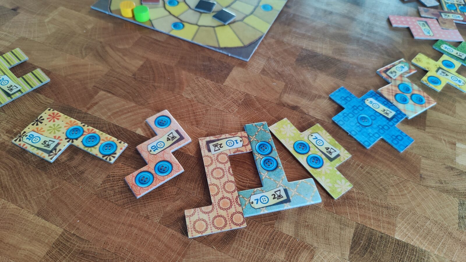 W tej grze planszowej, która została oceniona na poziomie 7.6 w rankingu BGG, mierzą się dwaj gracze. Nie mniej, nie więcej. Każdy dostaje swoją planszę podzieloną na siatkę 9×9, garść guzików (to waluta) i stawia swojego pionka na planszy głównej, która reprezentuje długość gry i określa momenty dobierania waluty czy łatek. Rozgrywka polega na kupowaniu różnego rodzaju materiałów rozproszonych dookoła planszy głównej (dostępne kafelki określa pozycja drewnianego pionka) i układania ich na własnej planszy tak, aby w toku gry zakryć jej możliwie najwięcej. Im więcej “dziur” będziecie mieli na planszy, tym więcej guzików będziecie musieli “oddać” pod koniec gry, a musicie wiedzieć, że to właśnie liczba guzików określa zwycięzcę.