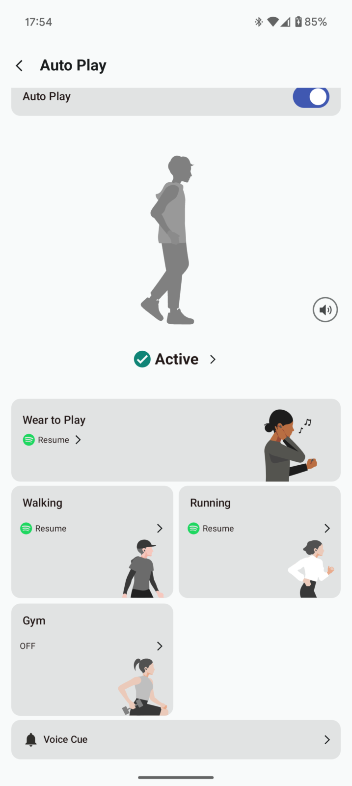 Mało? Oprogramowanie może też dopasowywać tryb pracy słuchawek na bazie tego, gdzie przebywamy dzięki “Adaptive Sound Control”. To rozwiązanie łączy informacje o dźwięku dookoła, jak i o lokalizacji naszego smartfonu. To z jego powodu aplikacja prosi nas o skorzystanie z dokładnej lokalizacji, choć podczas korzystania zauważyłem, że w zupełności wystarczy przybliżone położenie. Z tą funkcją poniekąd wiąże się “Auto Play”, dzięki któremu słuchawki uruchomią muzykę ze Spotify gdy je włożymy, ale też gdy rozpoczniemy trening lub spacer. Rozwiązanie rozszerza standardowe uruchamianie dźwięku po tym, gdy włożymy słuchawki do ucha, ale wymaga aktywnego Bluetooth Low Energy.