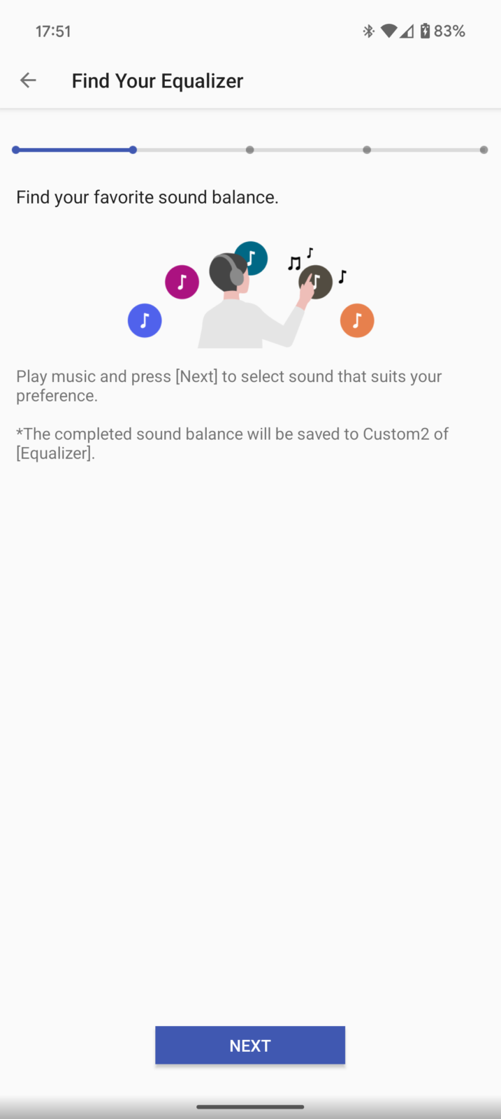 Niżej znajdziemy korektor graficzny i tu Sony także zadbało o opcje. Znajdziemy 8 ustawień predefiniowanych oraz opcję stworzenia dwóch własnych. Co więcej, ustawienia te możemy stworzyć podczas słuchania muzyki w ramach rozwiązania “Find Your Equalizer”. Wystarczy wybierać ustawienia preferowanego dźwięku, choć osobiście nie odczułem wielkiej różnicy pomiędzy różnymi wersjami.