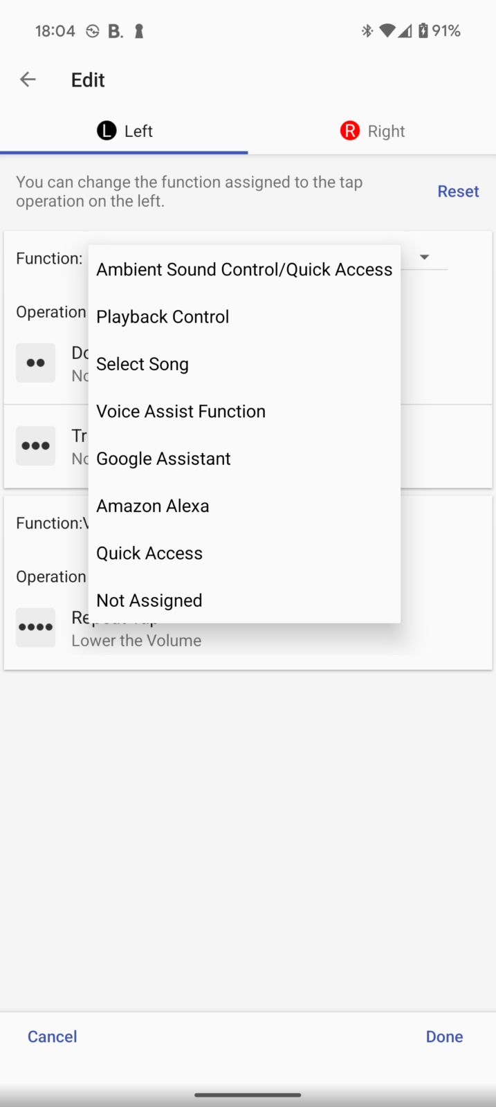 W tym miejscu ustawicie, co wydarzy się po jednokrotnym, dwu- i trzykrotnym naciśnięciu płytki dotykowej. Włączycie także gesty realizowane za pomocą głowy (których konfiguracja z telefonami jednak mi się nie udała). To także miejsce na ustawienia połączeń Bluetooth Low Energy i głośności powiadomień.