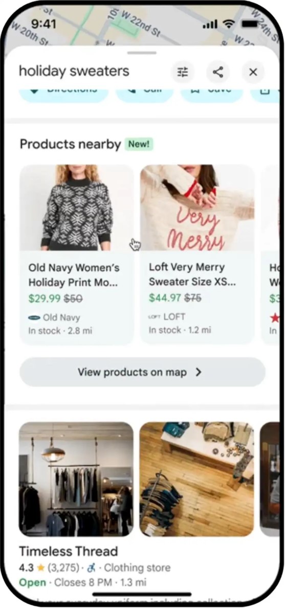 Chyba każdy z nas nie raz doświadczył tej irytacji podczas świątecznych zakupów, kiedy jeździł po mieście w poszukiwaniu danej rzeczy, odwiedzając różne sklepu, w których ten produkt „powinien być”. Może to znacznie utrudnić życie, zmarnować czas i zmienić kupowanie prezentów w istną męczarnię. Google chce nam w tym pomóc, wprowadzając nową funkcję w mapach. Obecnie, jeśli wpiszemy w aplikacji produkty, takie jak „świąteczny sweter”, pojawi nam się lista sklepów, w których te produkty mogą być dostępne.