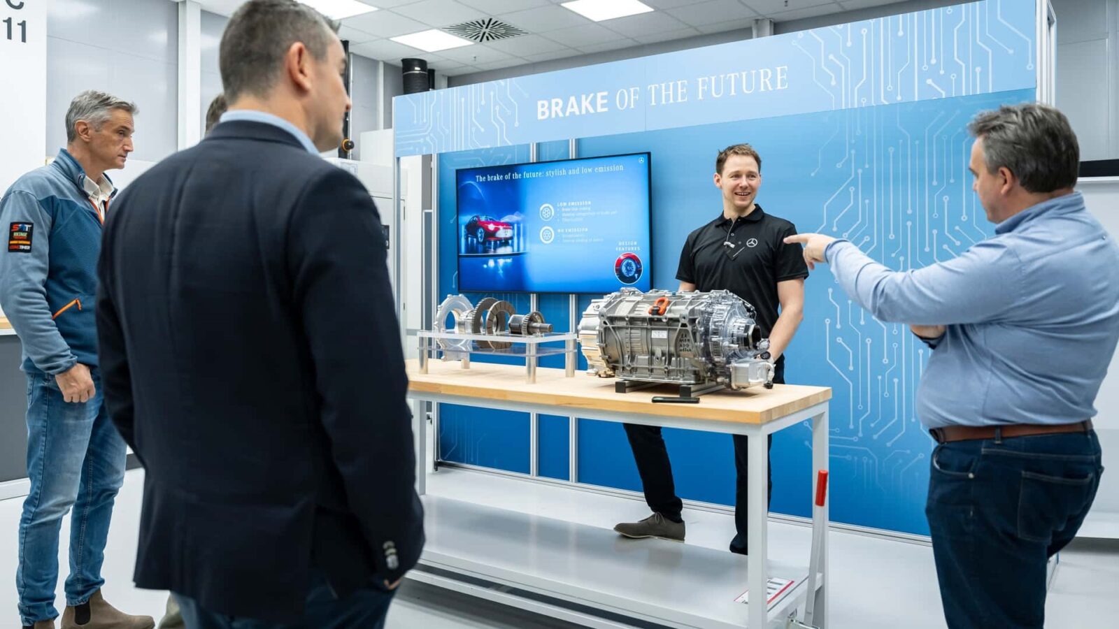 In-Drive Brakes Mercedesa rozwiązują te wszystkie problemy, przenosząc mechanizm hamowania prosto do zespołu silnika. W nowym systemie okrągła klocka hamulcowa naciska na nieruchomy, chłodzony wodą pierścień, eliminując potrzebę stosowania zacisków i tarcz hamulcowych na kołach. Ten unikalny projekt działa podobnie do sprzęgła w manualnych skrzyniach biegów. Obracający się dysk połączony z wałem wyjściowym silnika spowalnia pojazd, gdy jest dociskany do nieruchomych płyt, podczas gdy chłodzenie płynem skutecznie zarządza ciepłem generowanym podczas hamowania, a szczelna obudowa zbiera pył hamulcowy, zapewniając jego izolację przez cały okres użytkowania pojazdu.