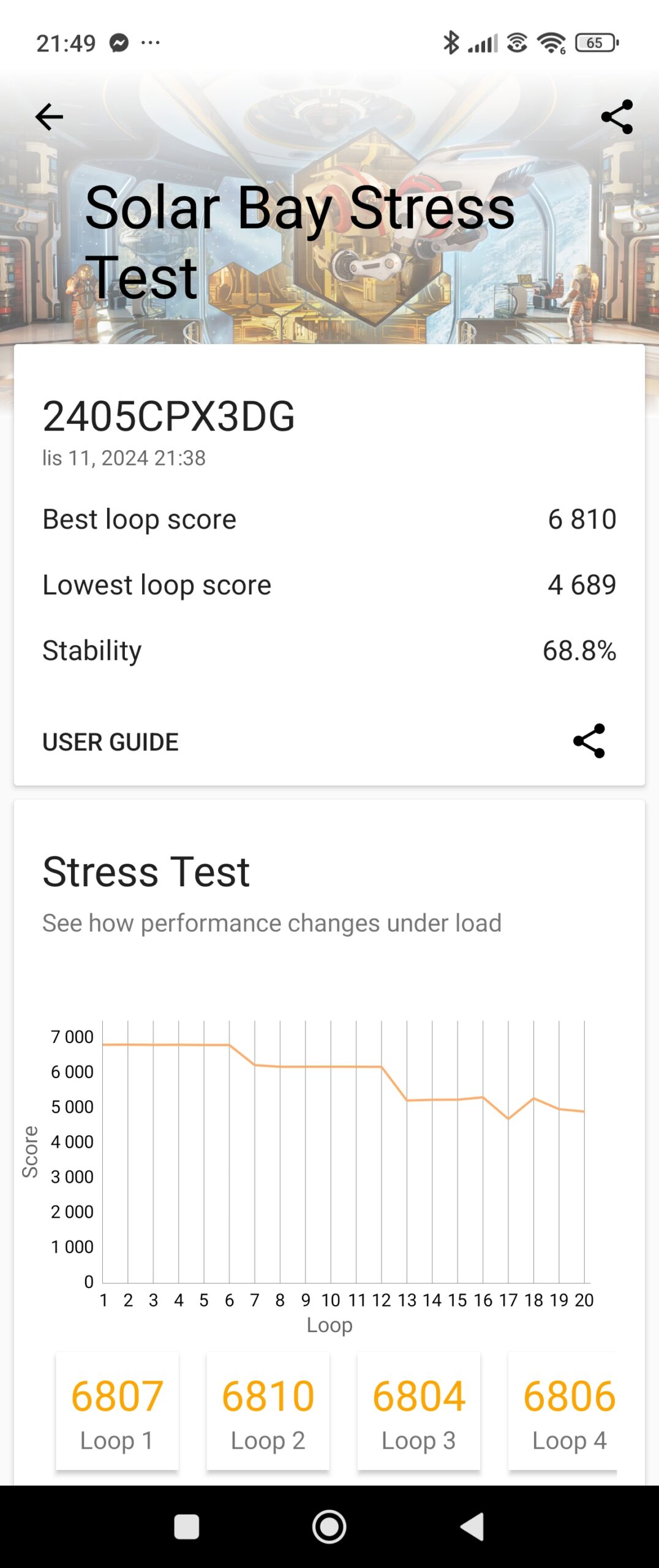 - Solar Bay Stress Test: 6810 / 4689 pkt, stabilność 68,8%