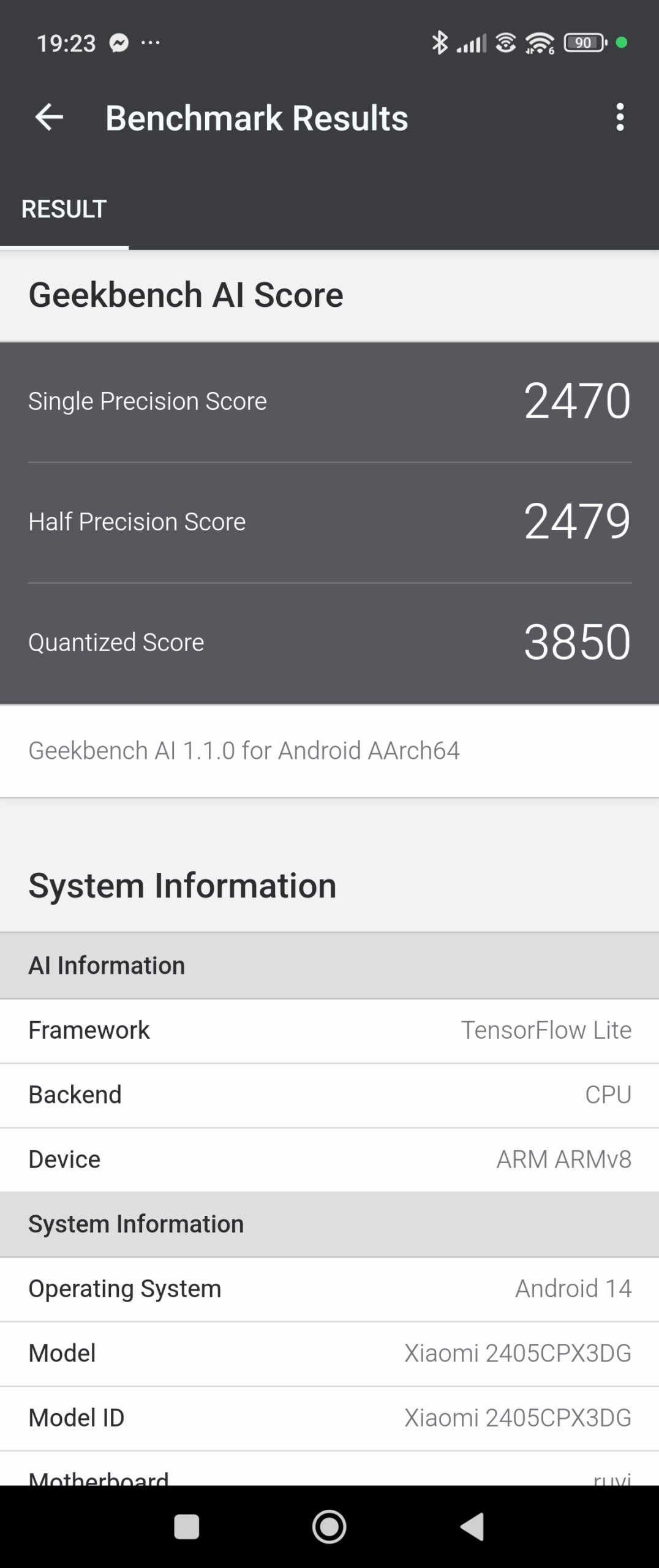 - Geekbench AI CPU: 2470 / 2479 / 3850 pkt