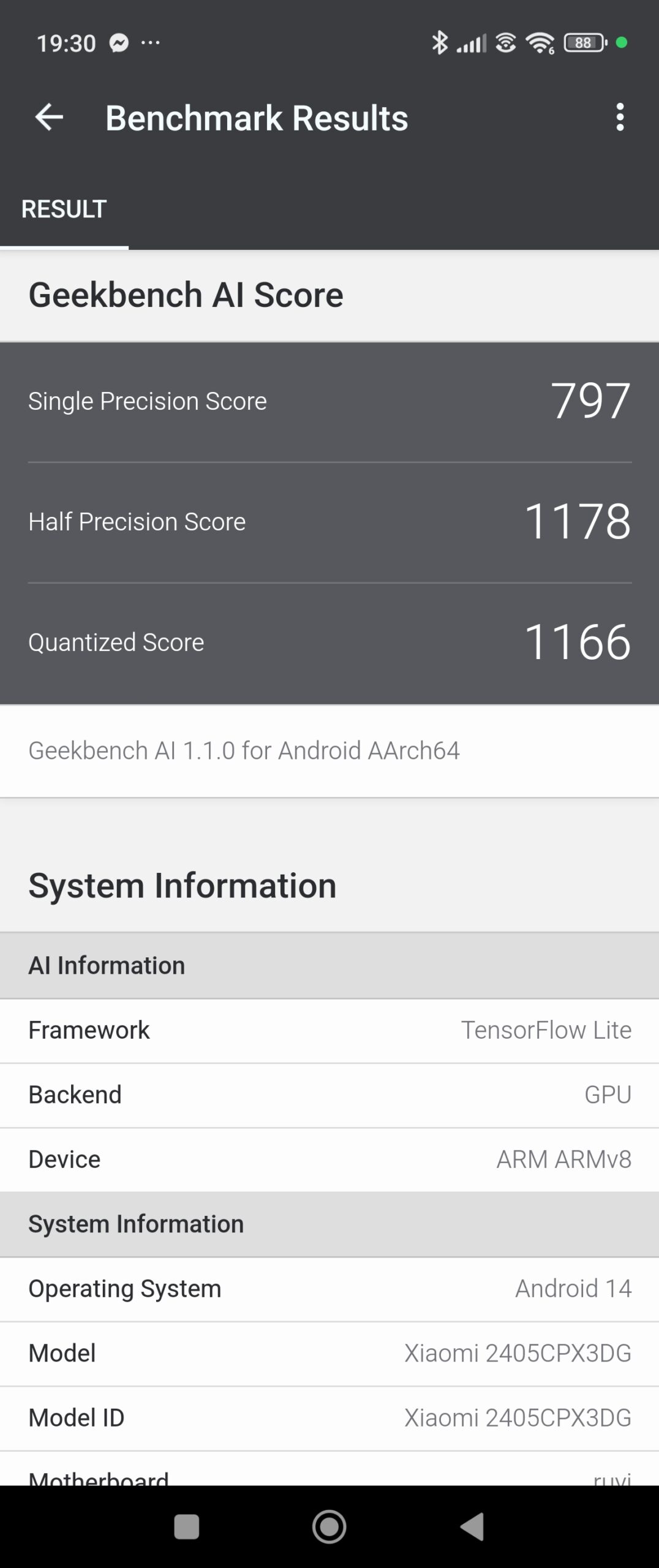 - Geekbench AI GPU: 797 / 1178 / 1166 pkt