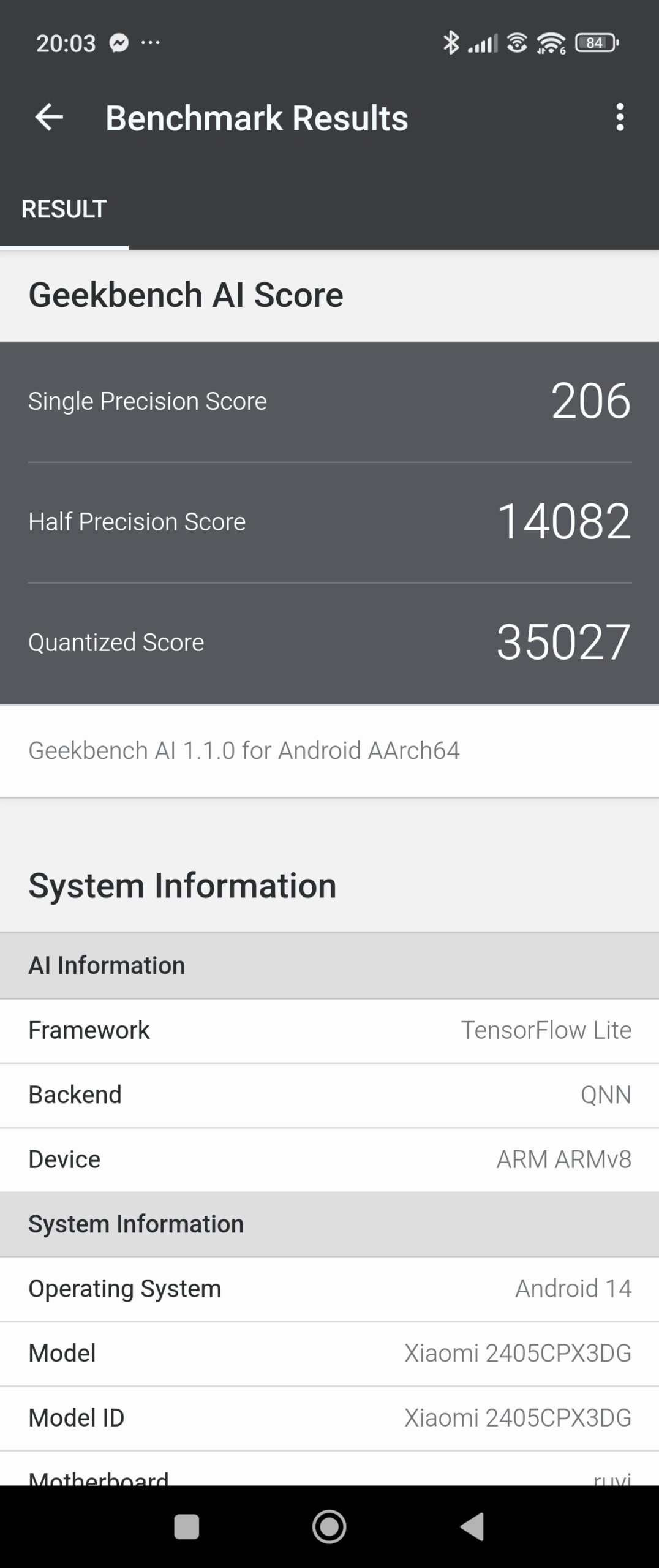 - Geekbench AI QNN: 206 / 14082 / 35027 pkt