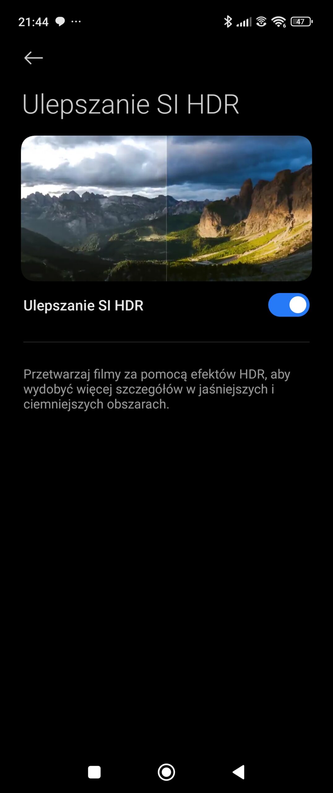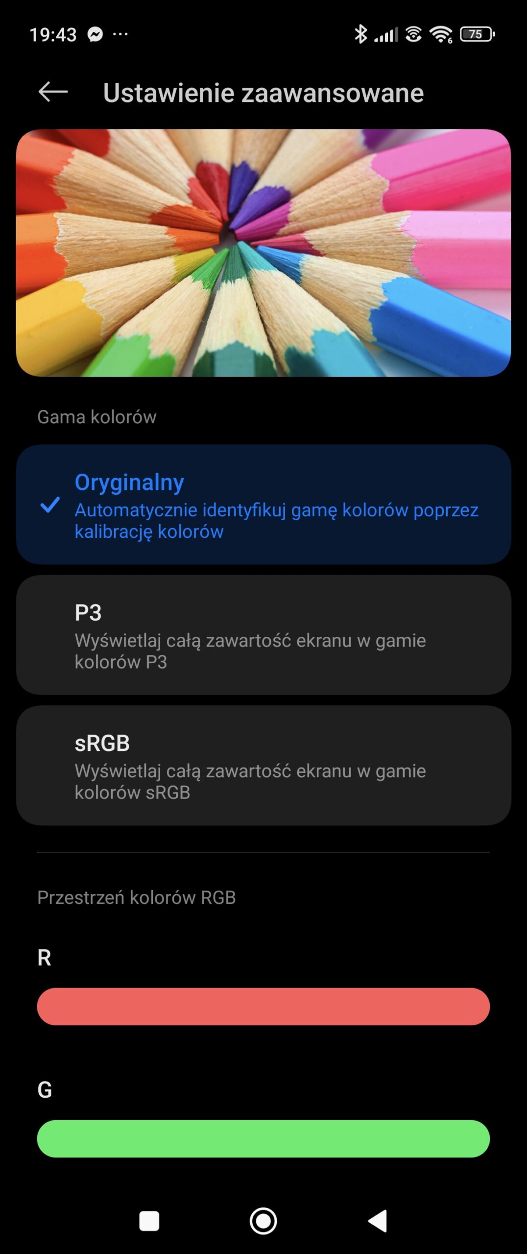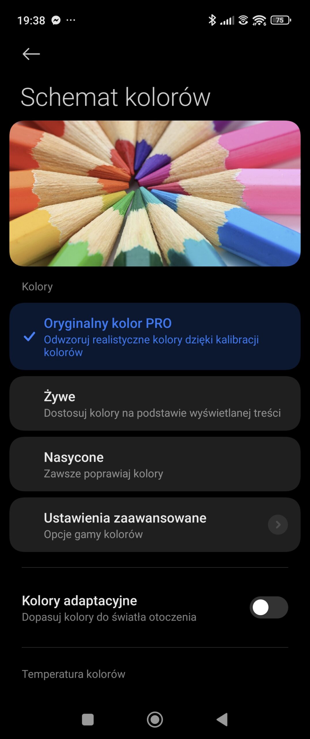 Wewnętrzny ekran jest jeszcze lepszy – jest to bowiem panel LTPO OLED, zatem ma dynamiczne odświeżanie działające w zakresie od 1 do 120 Hz. Reprodukcja kolorów, jasność maksymalna i zgodność z HDR jest identyczna, jak na w ekranie zewnętrznym. W ustawieniach dostępne są aż 3 schematy kolorów – Oryginalny kolor Pro, Żywe, Nasycone oraz Ustawienia zaawansowane, gdzie można ustawić przestrzeń barwną na sRGB, P3 lub pozostawić oryginalną z kalibracją. Postawiłem na ten ostatni wariant i się nie zawiodłem, Xiaomi MIX Flip radził sobie bowiem z reprodukcją barw zdjęć znakomicie. Smartfon nie tylko potrafi odtwarzać materiały HDR, ale ma też oficjalną certyfikację, dzięki której można z tych możliwości skorzystać w popularnych serwisach VOD. Jakość obrazu jest znakomita.