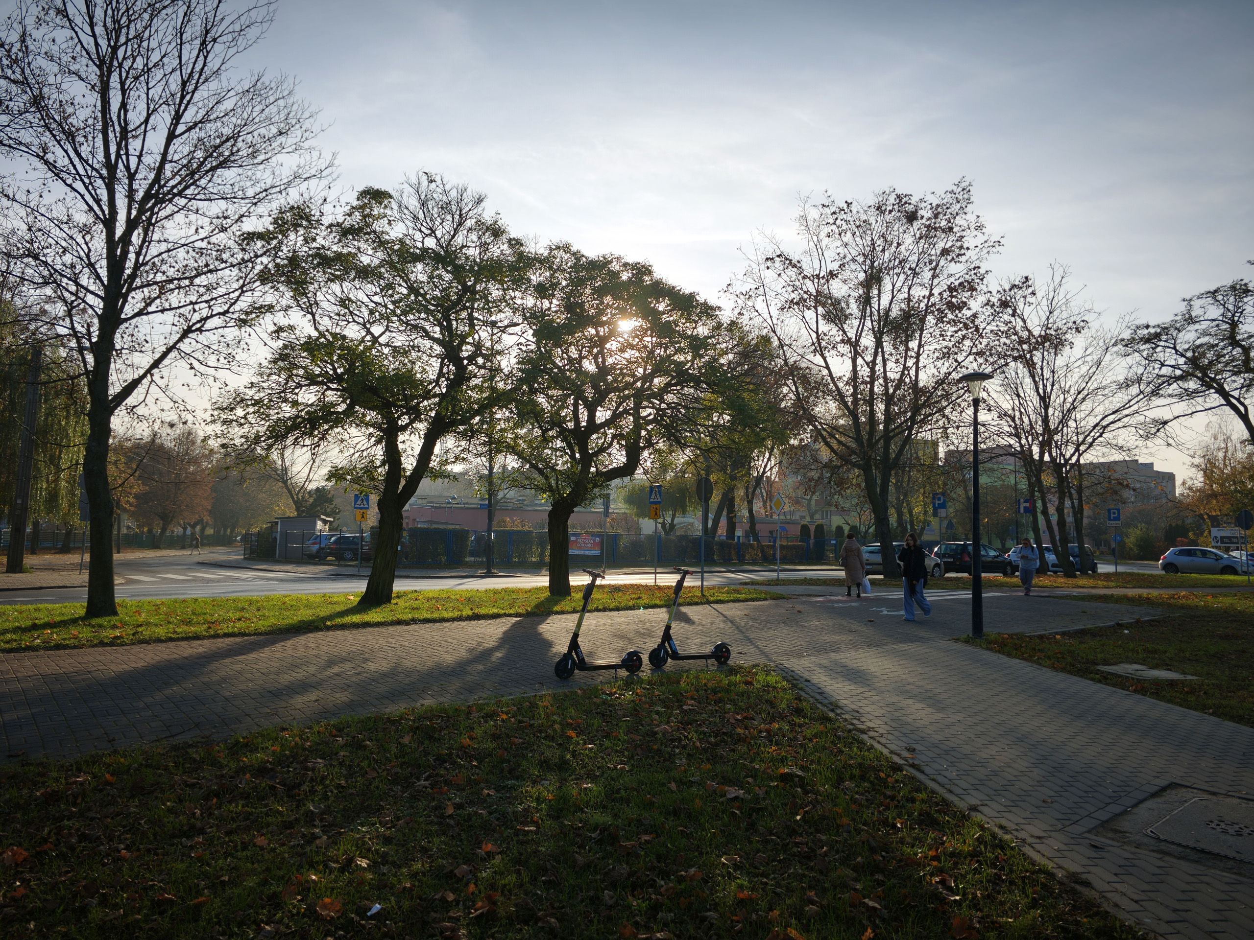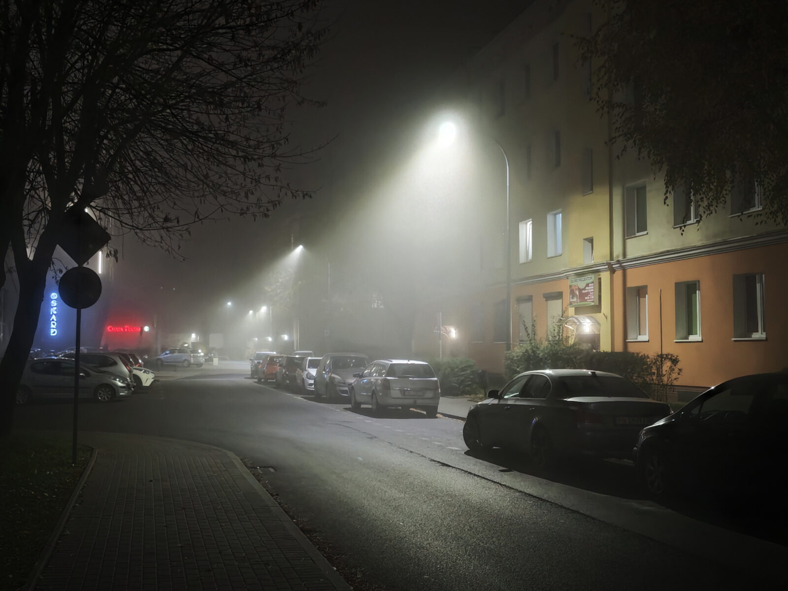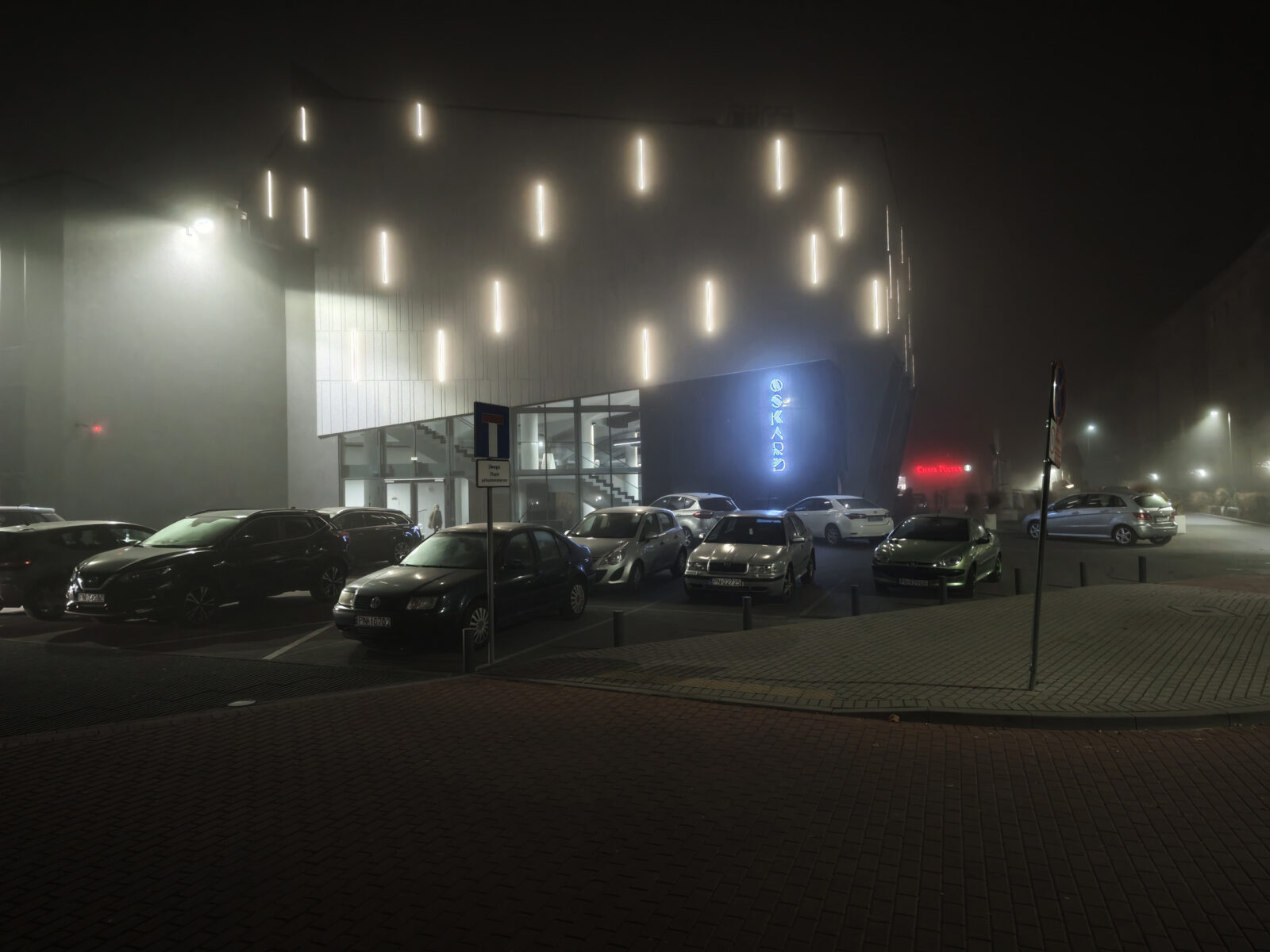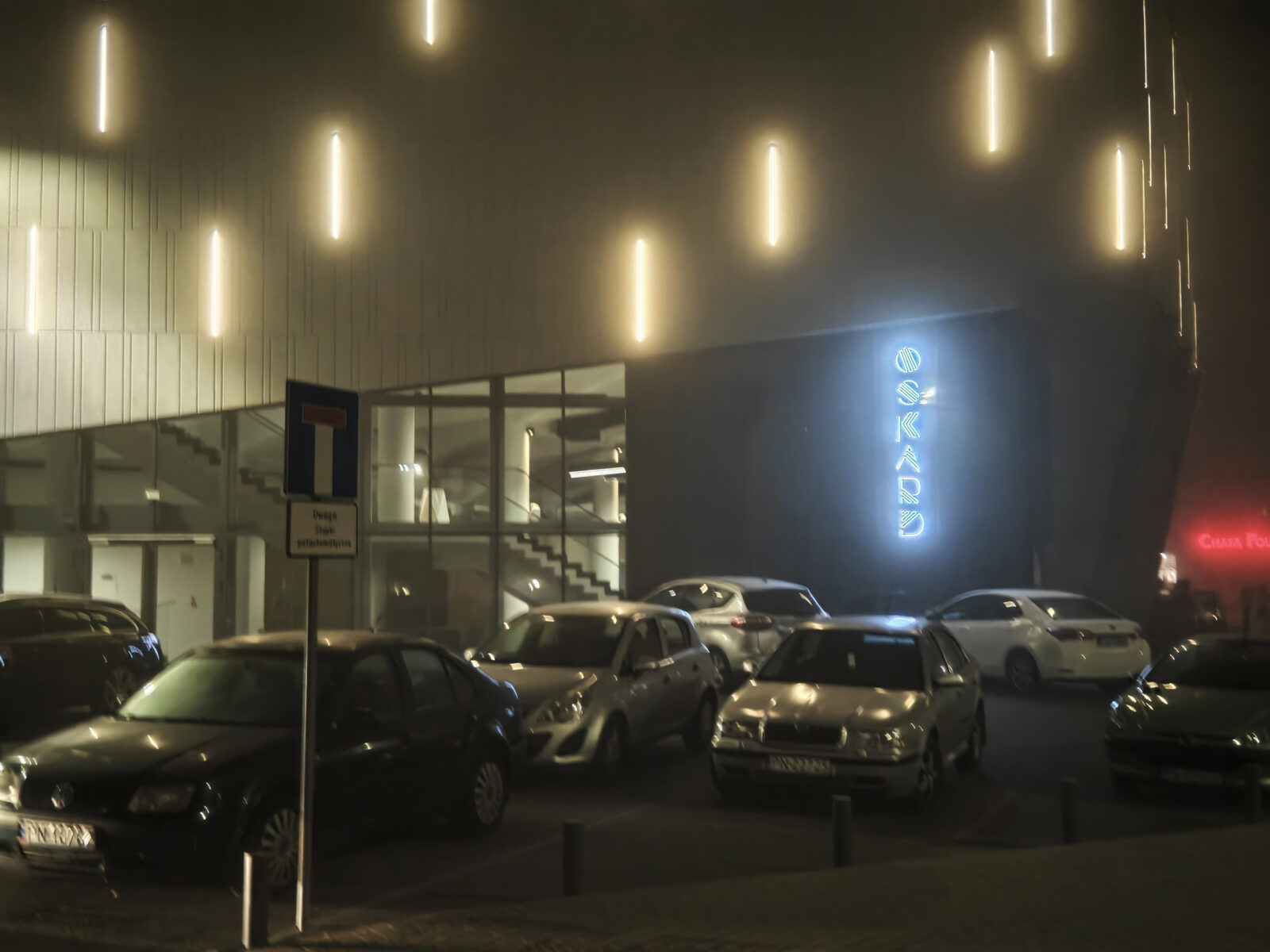 Zdjęcia nocne także są dobrej jakości. W trybie nocnym nie jest dostępne zbliżenie ×4 i ma to swoje uzasadnienie – najwyższą jakość mają zdjęcia z głównego aparatu szerokokątnego, te z aparatu standardowego wyglądają gorzej – o ile kolory i poziom artefaktów stoją na dobrym poziomie, to zdjęcia są mniej szczegółowe i widać na nich mocniejsze przetwarzanie. W tych warunkach forsowanie zoomu ×4 nie miałoby uzasadnienia. Ponownie też widać niezbyt dobrą pracę pod światło optyki MIX Flipa.