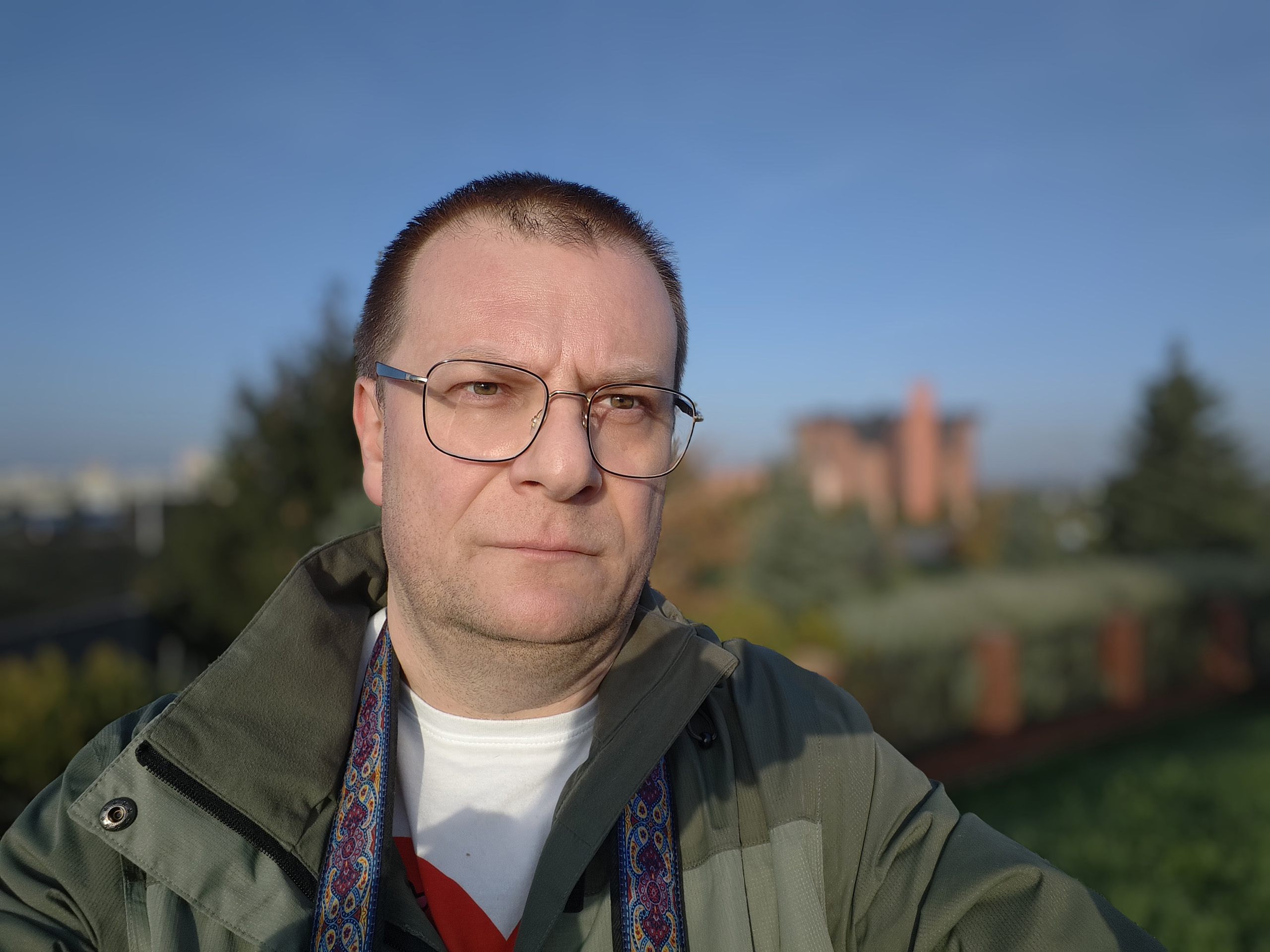 Xiaomi MIX Flip radzi sobie bardzo sprawnie w trybie portretowym. Granice odcięcia są precyzyjne, algorytm dobrze radzi sobie z włosami i tylko samo rozmycie jest nieco nienaturalnie gładkie. Jak większość składaków, Flip potrafi robić selfie zarówno aparatem przednim (który tu powinien być chyba nazywany wewnętrznym), jak i głównym, korzystając z małego ekranu do podglądu. Co ciekawe, zdjęcia wykonane w ten sposób nie zachowują proporcji matrycy, tylko są przycięte, ale można z tym żyć.