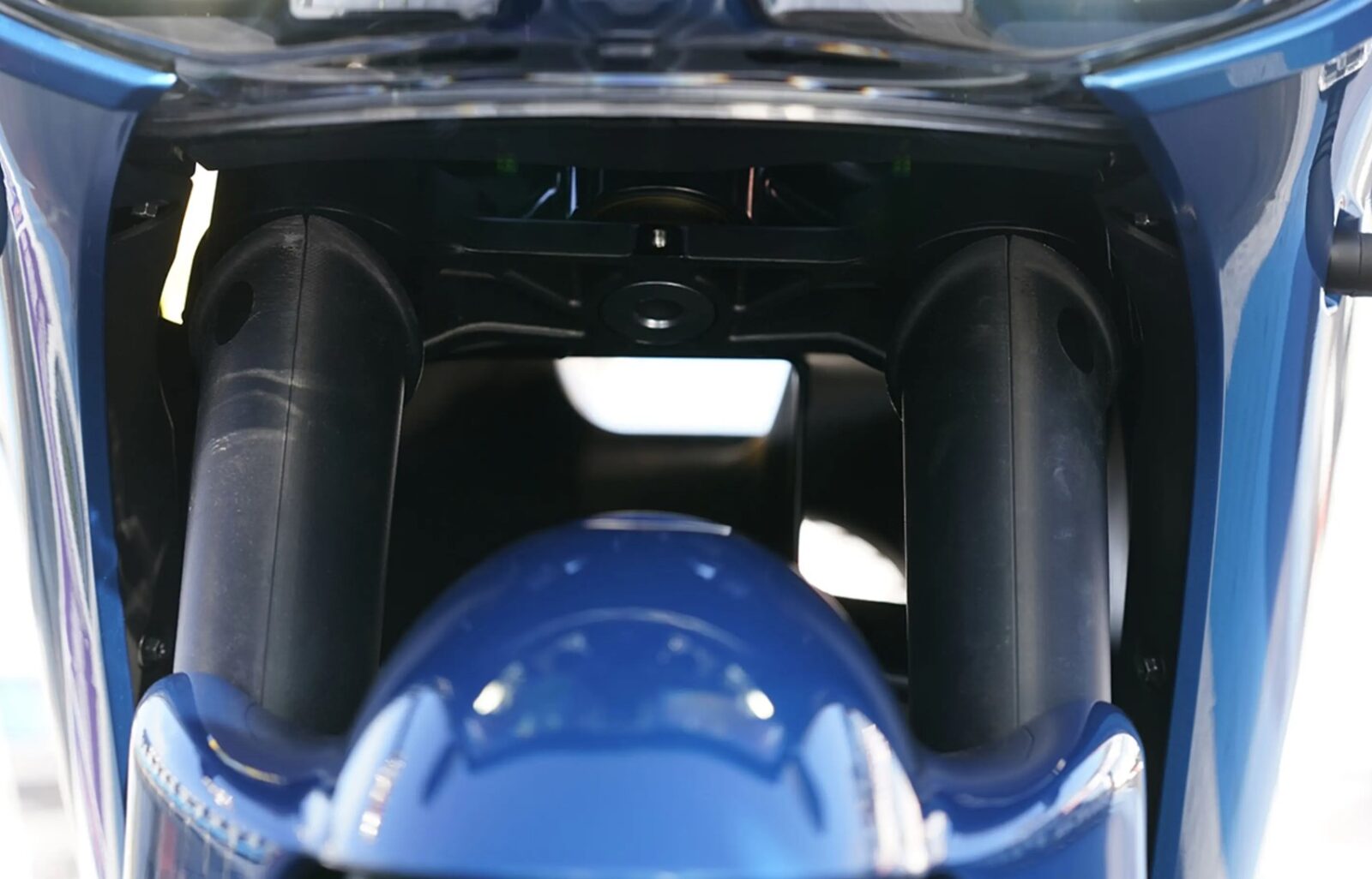 Co więc zyskał elektryczny motocykl Zero SR/S na tej modyfikacji, która sprowadza się do specjalnego tunelu, kierującego przepływ powietrza zza przedniego koła (osłona przedniego błotnika i widelca dodatkowo je optymalizuje) wzdłuż całego motocyklu, a następnie wyprowadza je nad tylnym kołem? Według zapewnień firmy, w grę wchodzi możliwość redukcji oporu powietrza o całe 10%, co z kolei może przełożyć się na teoretyczne zwiększenie zasięgu o 5%, choć konkretne wartości różnią się w zależności od warunków jazdy.