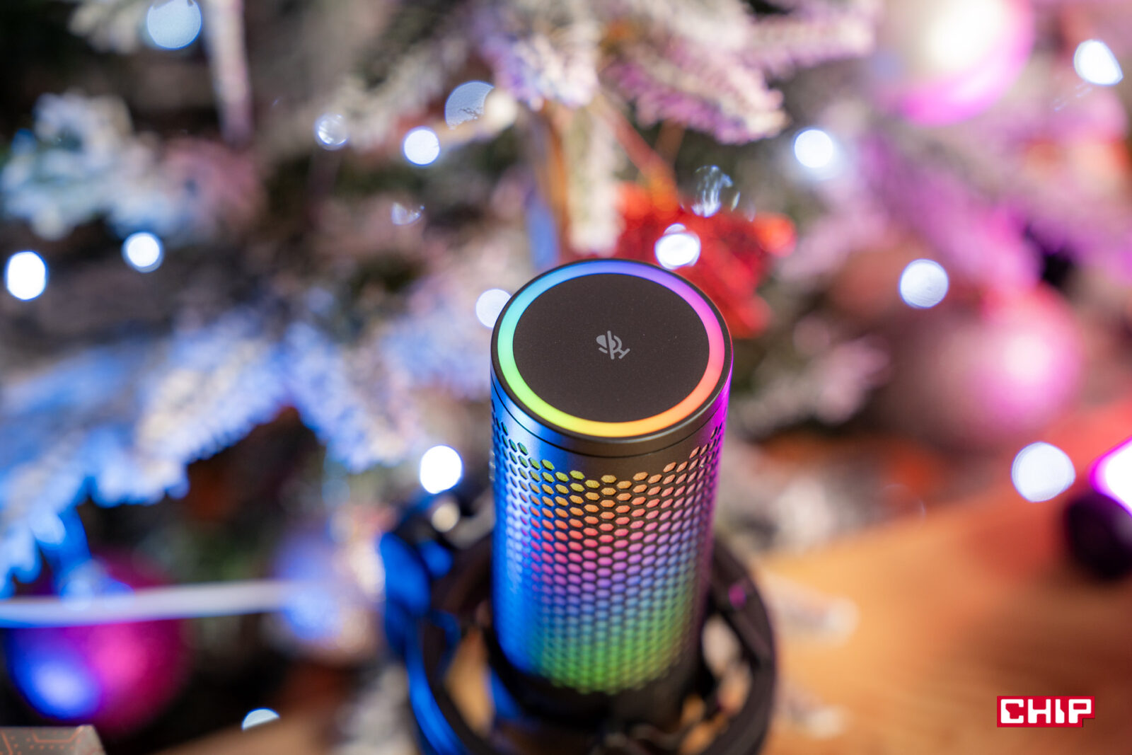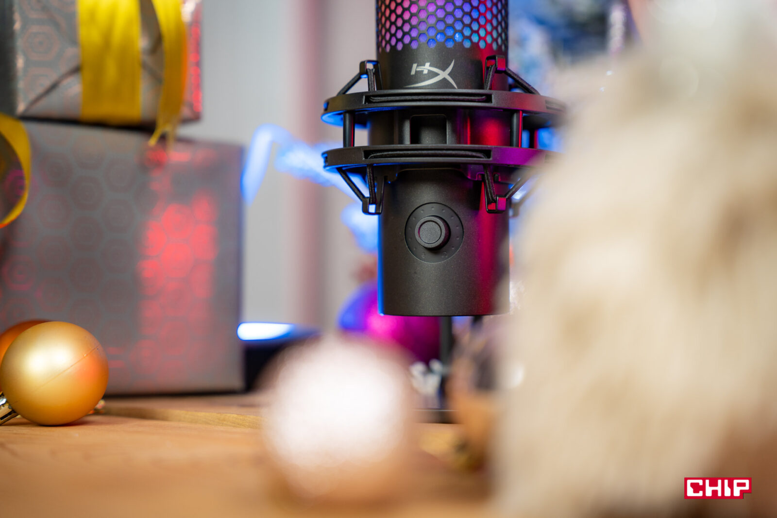 Streamerzy na pewno docenią obecność szybkiego wyciszenia mikrofonu, za co odpowiada przycisk na górze obudowy, który praktycznie zawsze mamy pod ręką. Z kolei esteci (i również streamerzy) zakochają się w personalizowanym podświetleniu LED, którym zarządzamy z poziomu aplikacji HyperX NGENUITY. Służy on też do strojenia mikrofonu.