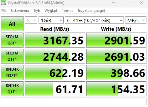 - 1 TB dysk SSD NVMe na PCIe 3.0