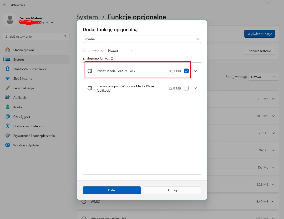 Największe zaskoczenie po uruchomieniu ARCTIC Senza? Interfejs po angielsku, którego musicie zmienić na język polski oraz specyficzny system operacyjny, bo nie Windows 11 Home, a Windows 11 Home N, który różni się od oryginalnej wersji na kilka kluczowych sposobów, ale głównie w zakresie funkcji multimedialnych. W systemie Windows 11 Home N brakuje bowiem programu Windows Media Player oraz innych preinstalowanych aplikacji i funkcji multimedialnych, takich jak Muzyka, Wideo, Dyktafon i Skype, ale na całe szczęście, jeśli użytkownicy chcą korzystać z funkcji multimedialnych, to muszą po prostu osobno pobrać i zainstalować pakiet funkcji multimedialnych dla systemu. Co ciekawe, wymagają go również inne programy pokroju silnika Unreal Engine, więc prędzej czy później zapewne będziecie musieli go zainstalować, jeśli nie ograniczacie się do najbardziej podstawowych aplikacji.