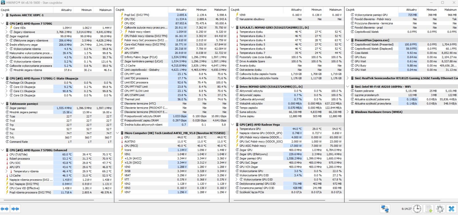 - Ryzen 5 5700G z 8 rdzeniami i 16 wątkami o maksymalnym taktowaniu 4,6 GHz