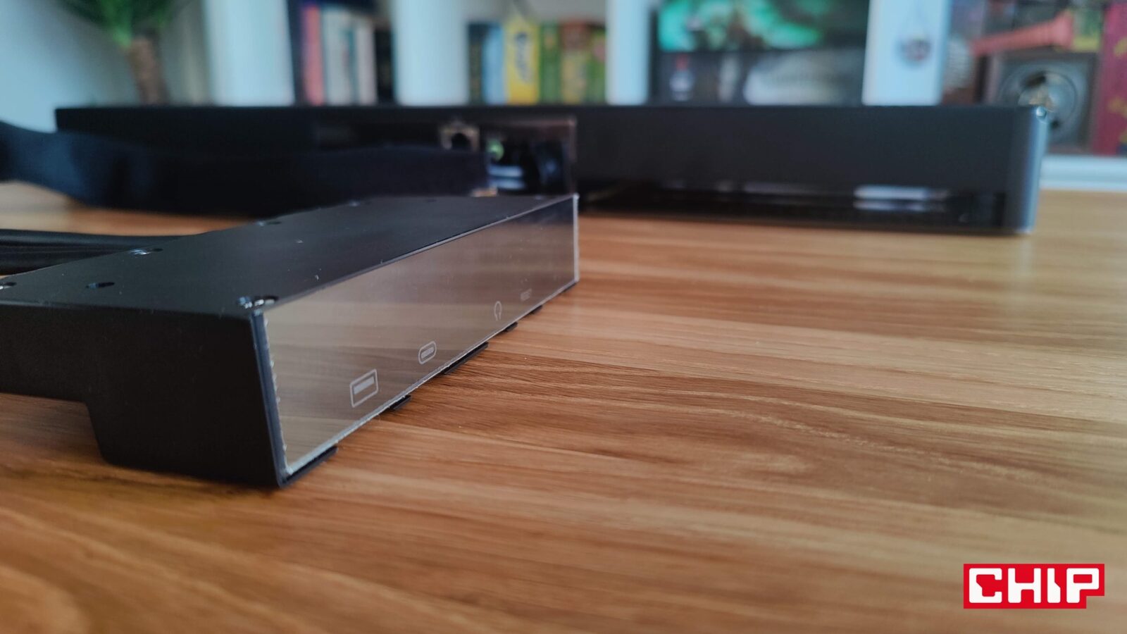 Zewnętrzna konstrukcja ARCTIC Senza wygląda tak, jak nowoczesny kaloryfer, ale jego surowość podkreślona wszechobecnym metalem, nie odbija się na funkcjonalności, bo przykładowo na spodzie tego modelu oprócz czterech otworów na śrubki, znalazły się też piankowe wstawki, które sprawiają wrażenie wyłącznie ochronnej dla blatu. Jedynym ciekawym elementem głównego modułu Senza jest zestaw wejść i wyjść. Znajdziecie tam następujące porty: