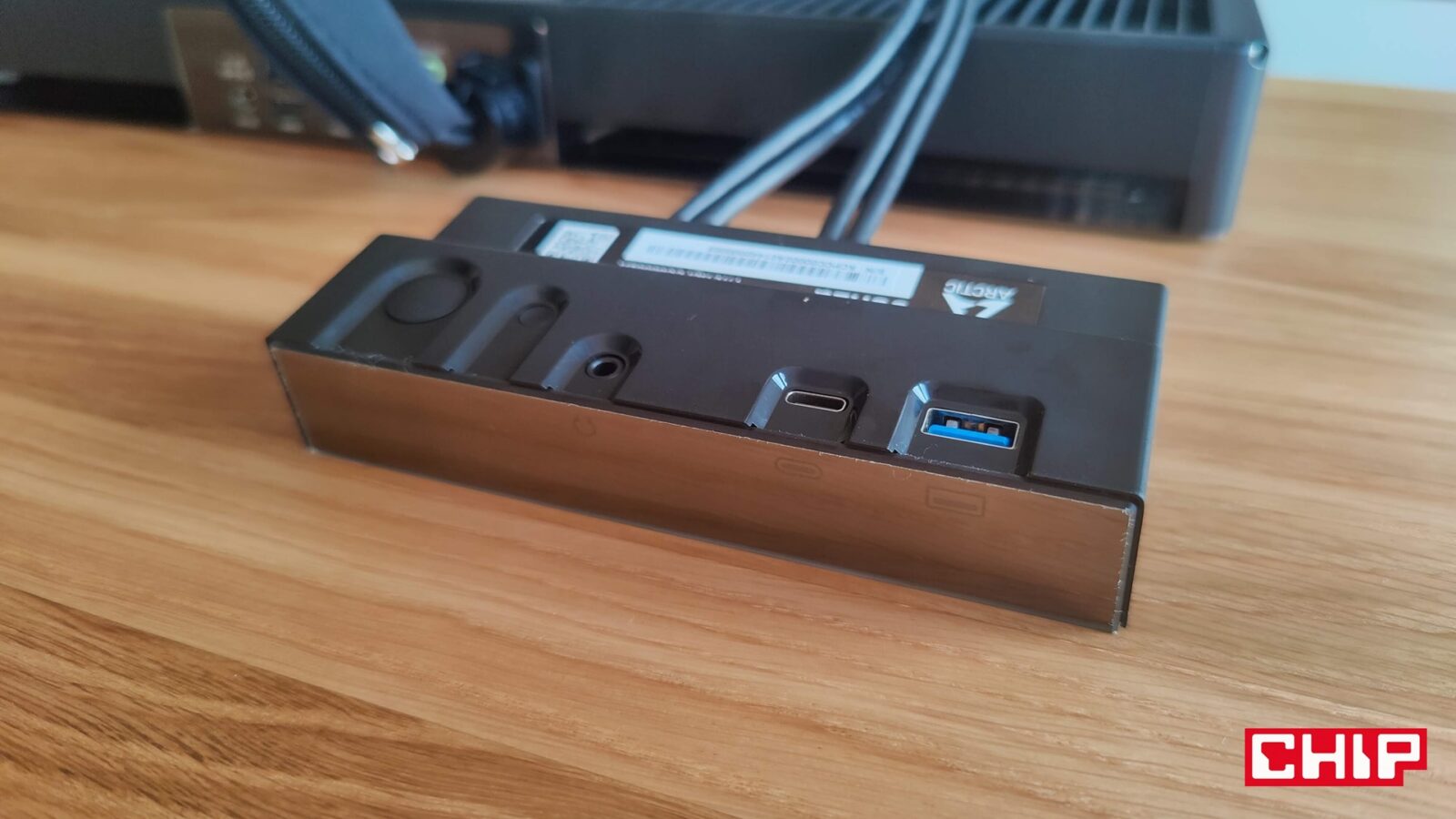 Na tym jednak zestaw I/O się nie kończy, bo połączony z komputerem na stałe przedni panel pełni dokładnie tę samą funkcję, którą pełni przedni panel w tradycyjnym komputerze. Znajdziecie na nim: