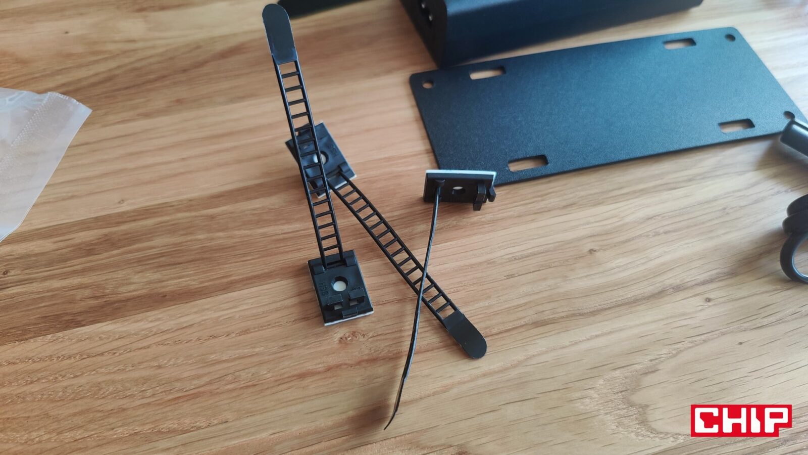 - plastikowych obejm na przewody, które możemy zarówno wkręcić, jak i przykleić naklejoną już taśmą 3M
