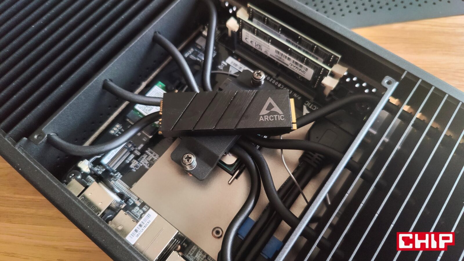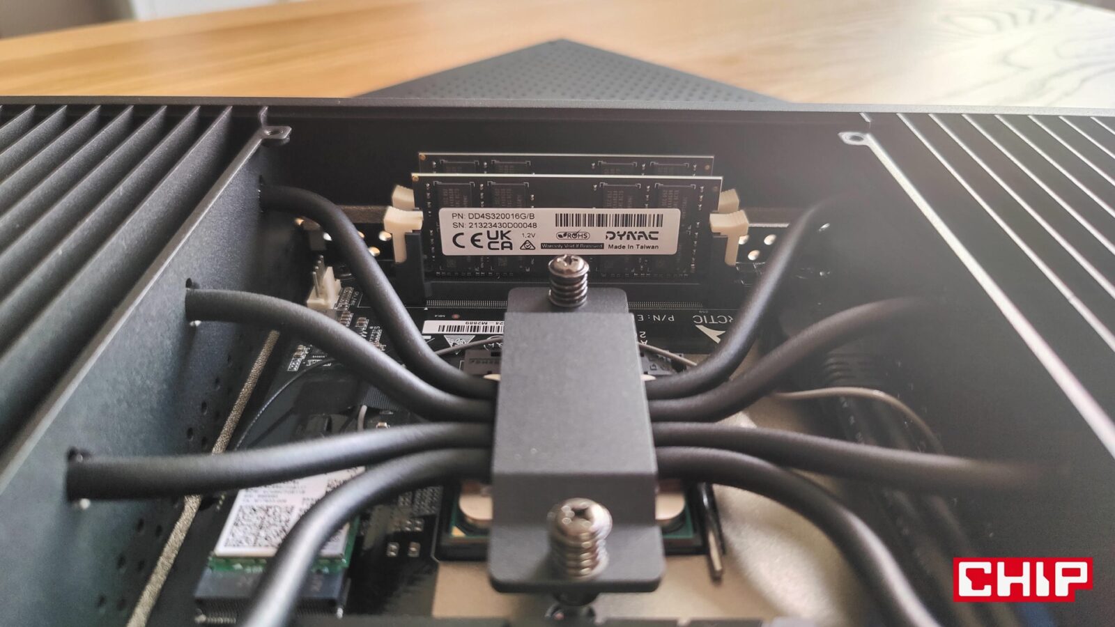 Bez względu na wybór, komputer Senza nie różni się konstrukcją. Pod perforowaną klapką na cztery śrubki znajdziecie niewielką płytę główną z dwoma “laptopowymi” slotami na DDR4, małoformatowym dyskiem SSD chłodzonym pasywnie oraz umieszczony w samym centrum procesor, z którym stykają się bezpośrednio cztery długie ciepłowody. Łącząca je pasta termoprzewodząca jest jedynym elementem, którego będzie trzeba wymienić po kilku, a najlepiej dwóch latach użytkowania. Prosto? Prosto. Jeśli z kolei nie wiecie, jaki model wybrać, to zapewniam, że do typowo biurowej pracy wystarczy wam najtańszy Senza 5500GT, ale jeśli chcecie pograć w wyższej płynności i sięgnąć po bardziej wymagające programy, to warto zainwestować w Senza 5700G. Jeśli z kolei myślicie np. o wirtualizacji i Hyper-V, to konieczny będzie wybór Senza 5700G Pro, jako że ten komputer doczekał się systemu Windows 11 Pro.
