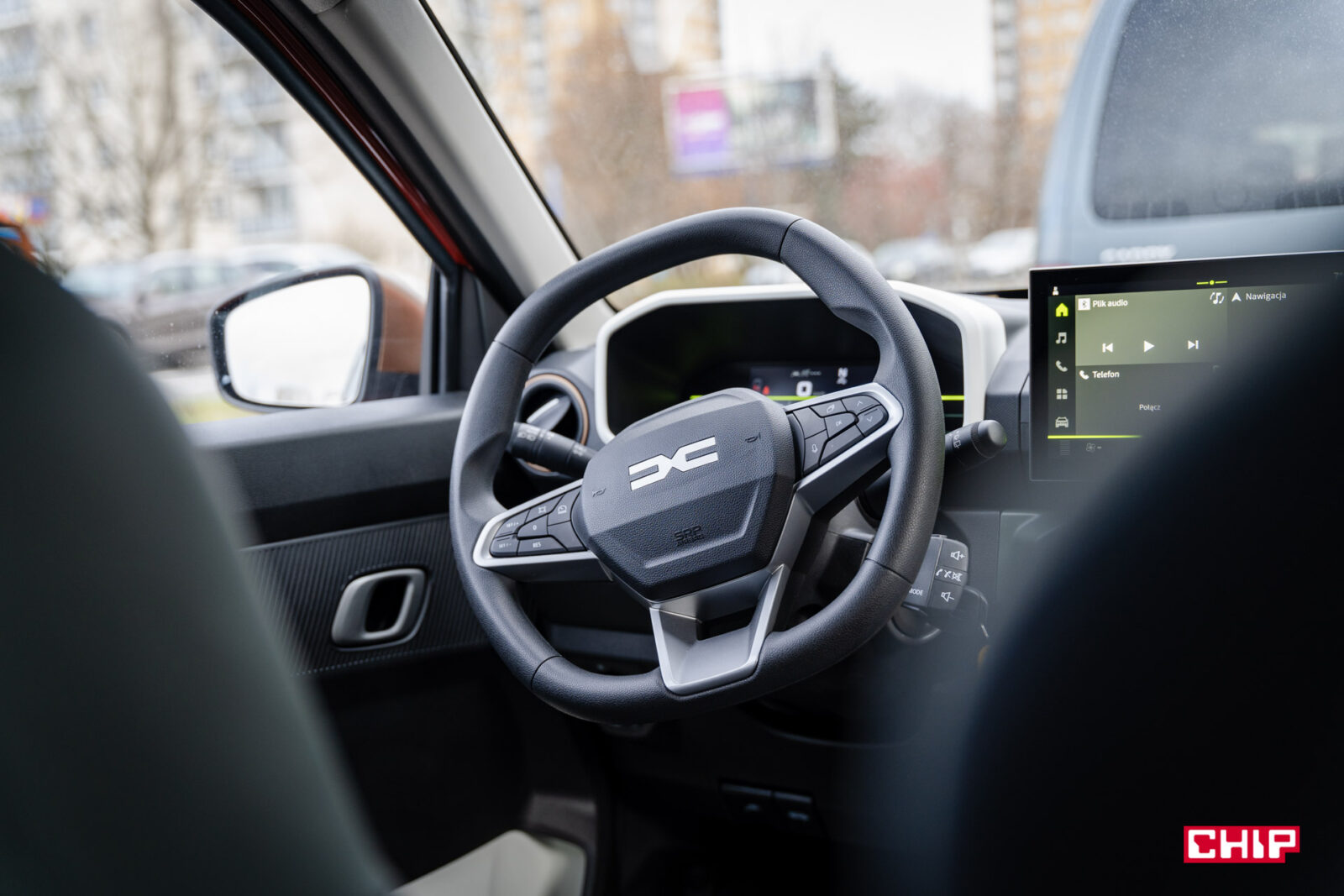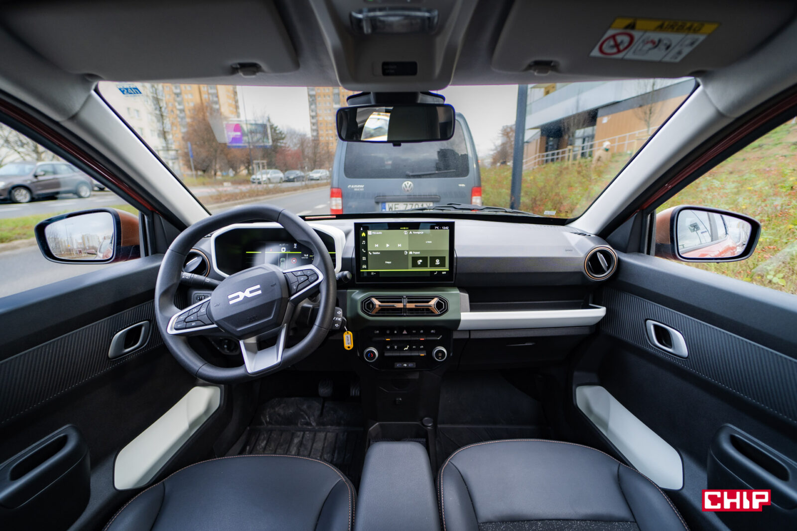 Spotkałem się z opiniami, że wnętrze Dacii Spring to bieda z nędzą i to w ogóle nie wygląda jak samochód. Niby rozumiem, że niektórzy recenzenci są rozpieszczeni Maybachami, ale na rynku są też auta tanie i tak, ludzie nimi jeżdżą. Do auta takiego jak Dacia Spring wsiada się bez żadnych oczekiwań i sprawa od razu wygląda zupełnie inaczej.