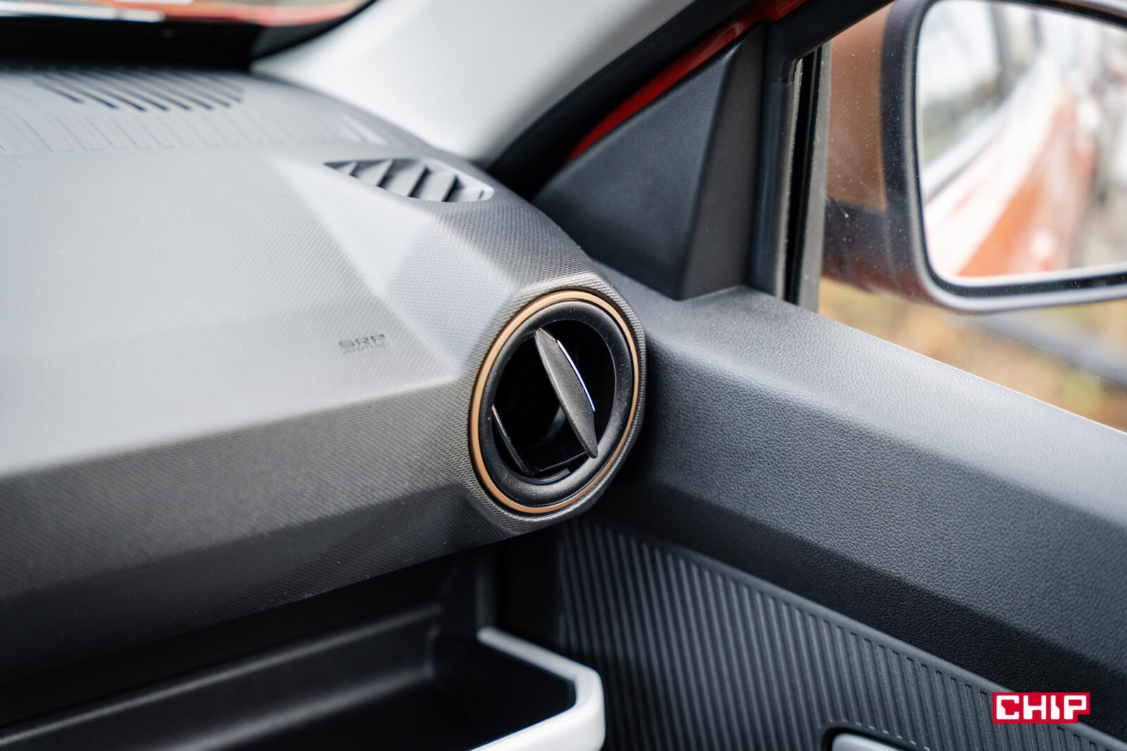 Wnętrze oczywiście nie jest wybitnie wykonane. Cieniutkie drzwi, wszechobecny plastik – jest tanio, ale to nie jest beznadziejna taniość, której stracy dotykać. To nie jest tak, jakbyśmy wsiedli do Daewoo Lanosa czy Kii z początków XXI wieku.