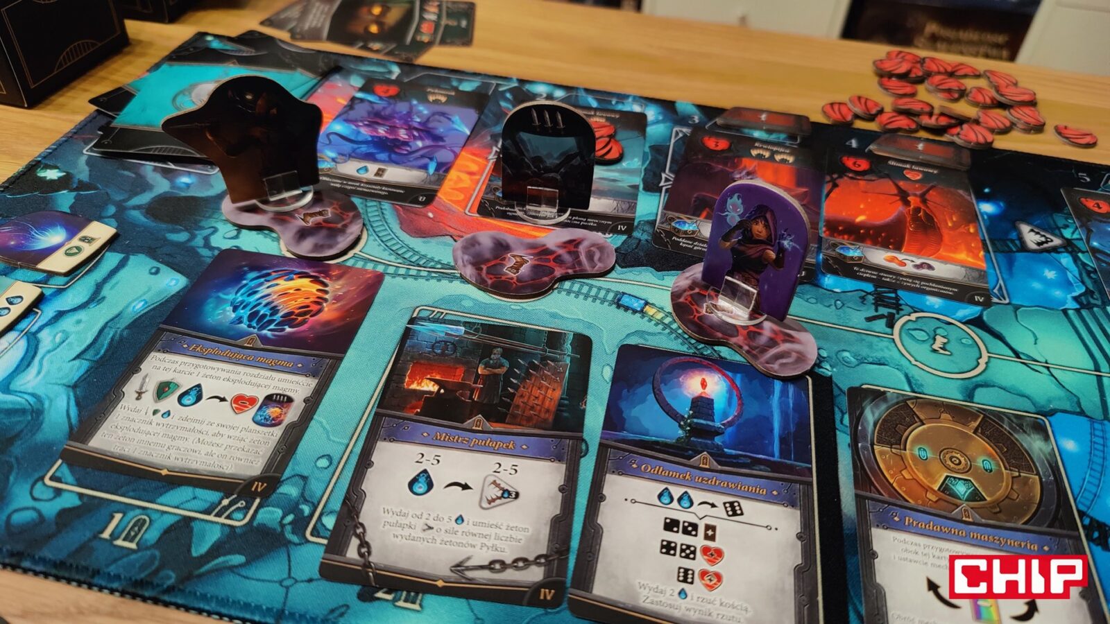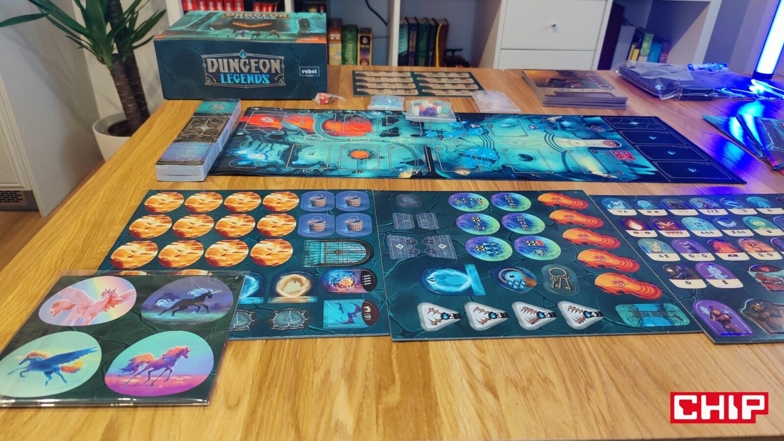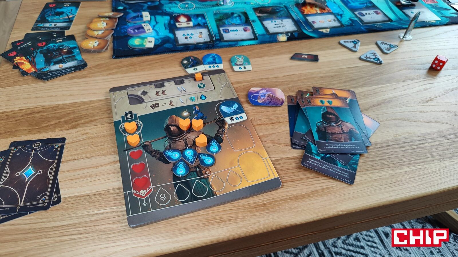 Sam zestaw Dungeon Legends jest zresztą bogaty sam w sobie, bo poza rozległą zawartością, wyróżnia się też materiałową matą wysokiej jakości z obszytymi krawędziami, grubymi tekturowymi żetonami i planszami, a nawet zestawem dwudziestu kart przedmiotów, które mienią się, jak karty legendarnych Pokemonów. Sam unboxing i proces składania sprawił zresztą, że przygoda z Dungeons Legends zaczęła się dla mnie lepiej, niż z takim Wiedźminem: Stary Świat w podstawowym wydaniu, który jednak kosztuje swoje, bo dwa razy więcej. Przejdźmy już jednak do tego, co najważniejsze – gameplayu.