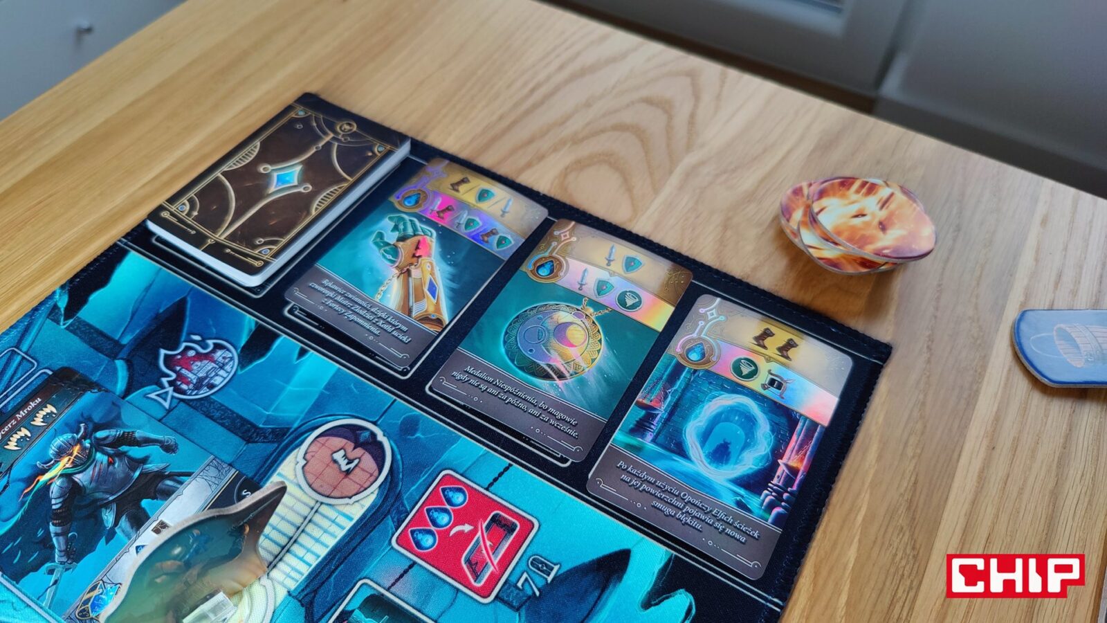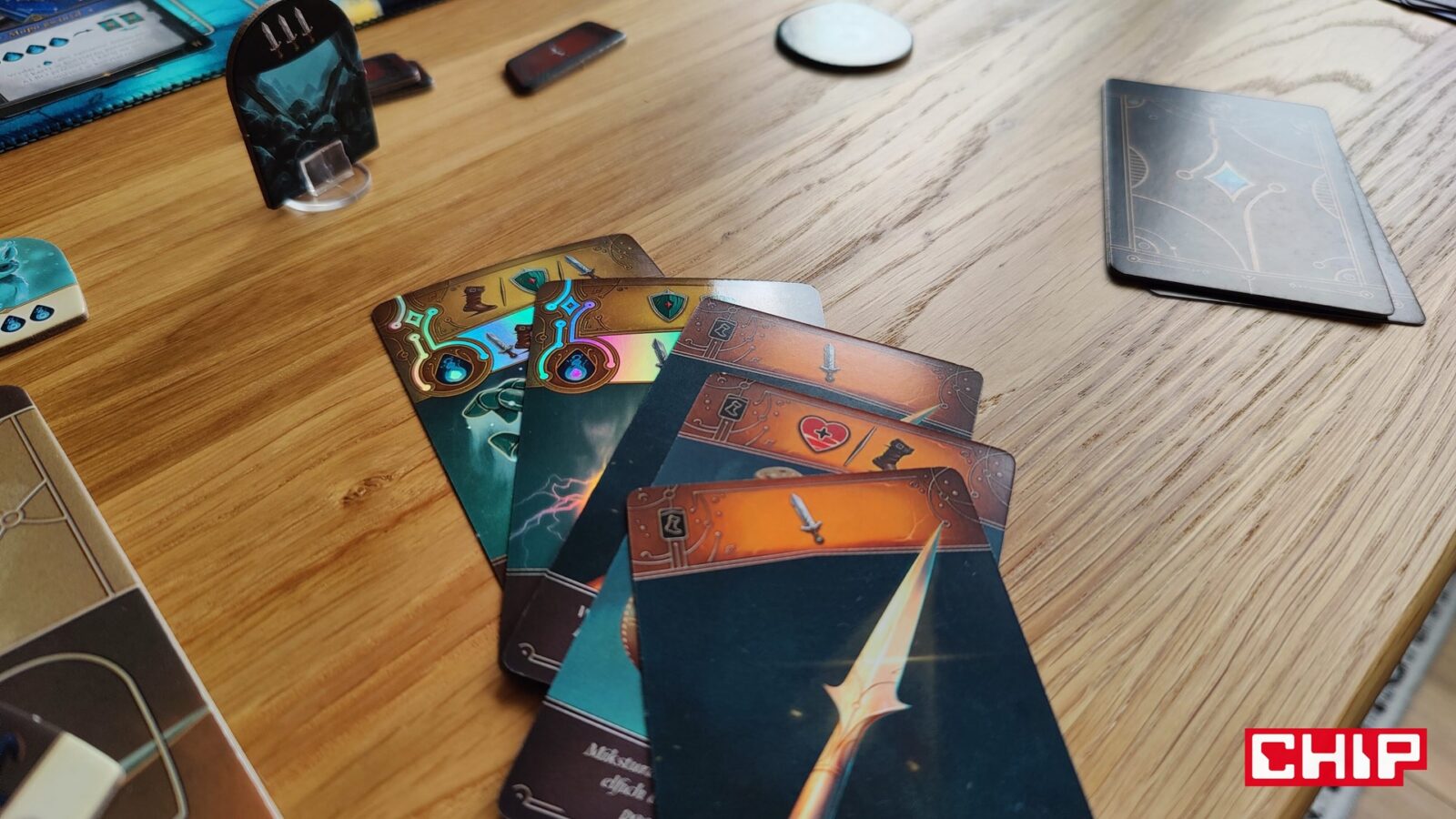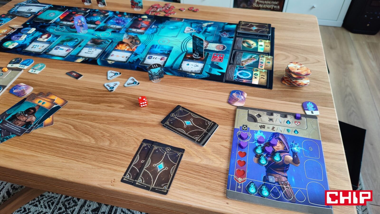 Sam zestaw Dungeon Legends jest zresztą bogaty sam w sobie, bo poza rozległą zawartością, wyróżnia się też materiałową matą wysokiej jakości z obszytymi krawędziami, grubymi tekturowymi żetonami i planszami, a nawet zestawem dwudziestu kart przedmiotów, które mienią się, jak karty legendarnych Pokemonów. Sam unboxing i proces składania sprawił zresztą, że przygoda z Dungeons Legends zaczęła się dla mnie lepiej, niż z takim Wiedźminem: Stary Świat w podstawowym wydaniu, który jednak kosztuje swoje, bo dwa razy więcej. Przejdźmy już jednak do tego, co najważniejsze – gameplayu.