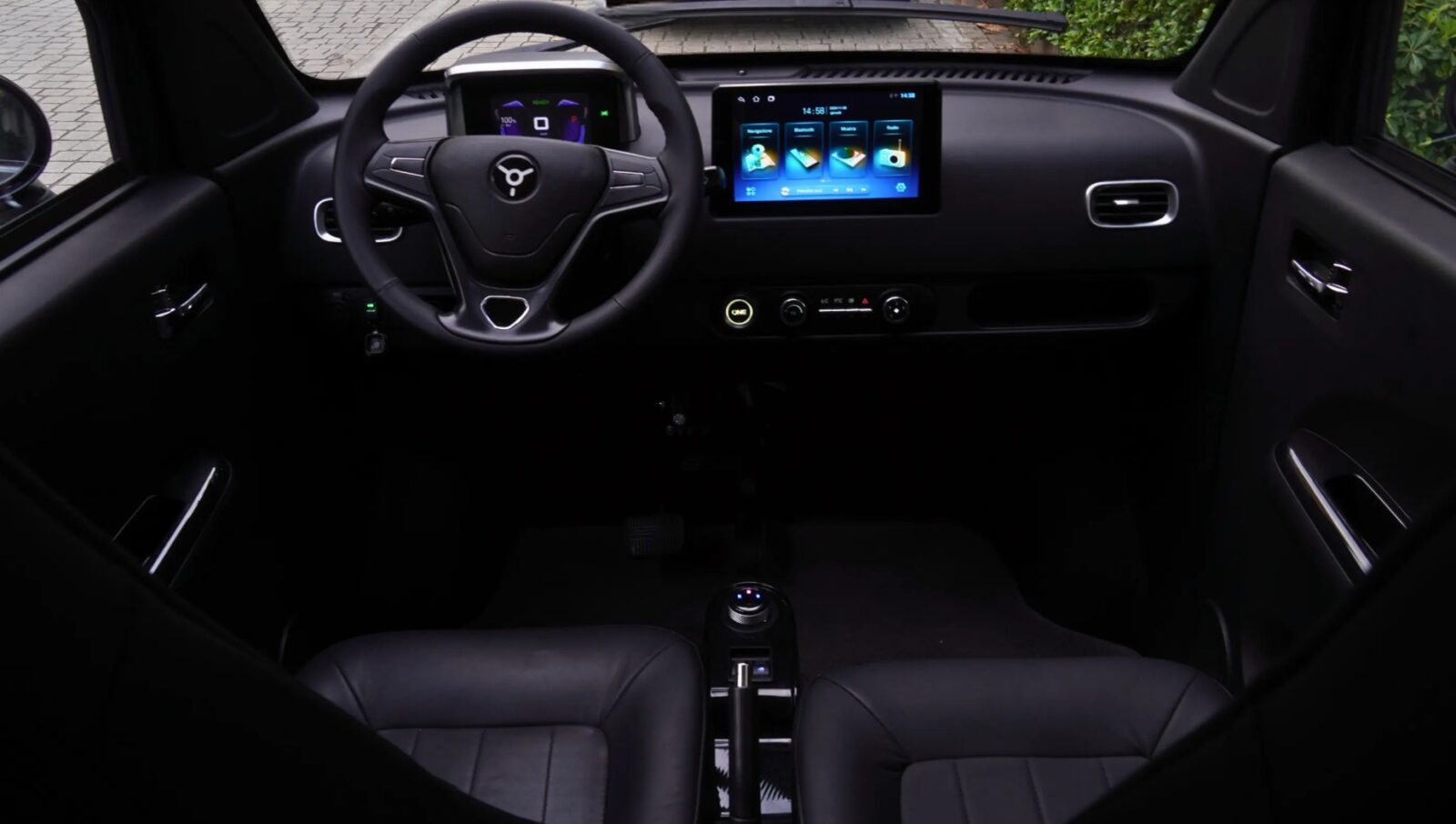 Kabinę Dresnera A05 zaprojektowano z myślą o nowoczesnym stylu życia i w sumie trudno narzekać na jej wyposażenie. Oferuje miejsce wyłącznie dla dwójki (kierowcy i pasażera), cyfrowy kokpit z centralnym wyświetlaczem wielkości tabletu z wbudowaną łącznością z systemem Android, ponoć wysokiej jakości głośniki, system ogrzewania oraz klimatyzację. Kwestią sporną pozostaje jednak korzystanie z tych ostatnich dodatków, które drenują akumulator, jak szalone. Pozostałe elementy wyposażenia obejmują oświetlenie LED, aluminiowe felgi, hamulce tarczowe i wzmocnioną stalową konstrukcję, która oferuje dosyć wysoki, choć wąski bagażnik na dwie, może trzy torby zakupowe.