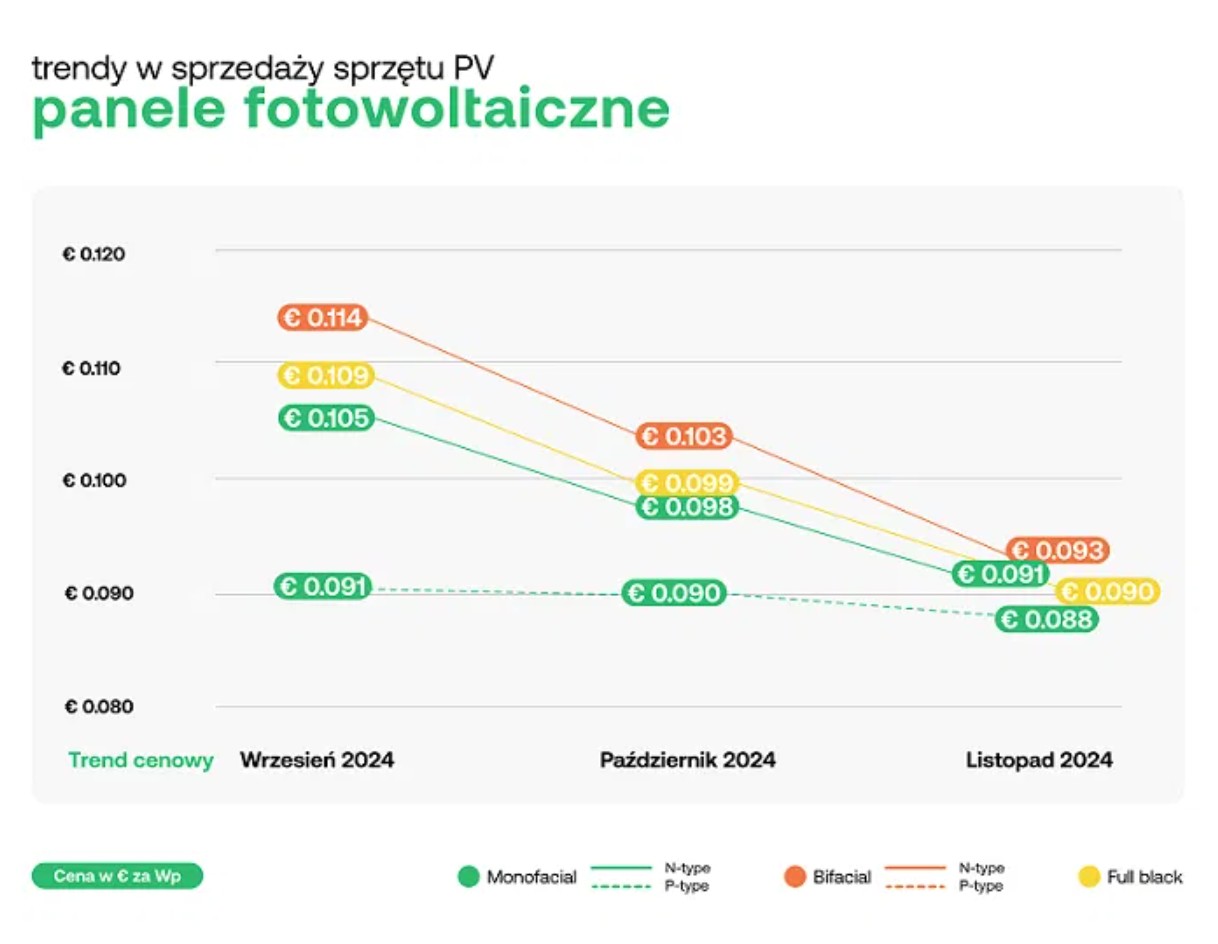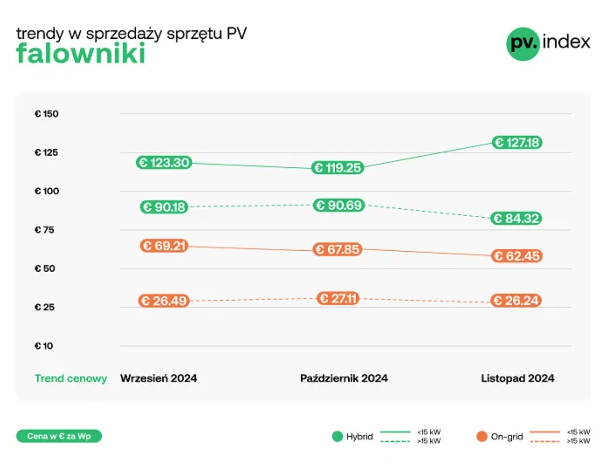 Co ciekawe, Ceny inwerterów, a więc kluczowych urządzeń w instalacjach fotowoltaicznych, także odnotowały zmiany. W większości przypadków ceny spadały, choć wyjątek stanowiły hybrydowe inwertery o mocy do 15 kW, które podrożały o 7% – do 127,18 €/kW. Wzrost ten wynikał z większego zapotrzebowania na domowe systemy magazynowania energii. Jednak ciągle spadające ceny paneli fotowoltaicznych i inwerterów otwierają nowe możliwości dla inwestorów indywidualnych i biznesowych. Coraz tańsza technologia umożliwia instalacje w miejscach wcześniej uznawanych za nieopłacalne. Dla użytkowników końcowych oznacza to szybszy zwrot z inwestycji w systemy fotowolaticznych i jednocześnie większą dostępność ekologicznych rozwiązań energetycznych.