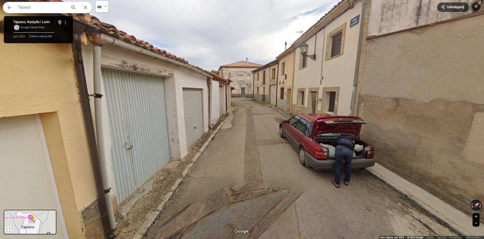 Zdjęcie poniżej, które nadal można zobaczyć w Street View, przedstawia osobę pakującą do bagażnika samochodu duży, podłużny pakunek, którego kształt od razu nasuwa na myśl zwłoki. Według BBC, był to pierwszy raz od 15 lat, kiedy samochód Google odwiedził Tajueco, niewielkie hiszpańskie miasteczko, w którym mieszka około 56 osób.