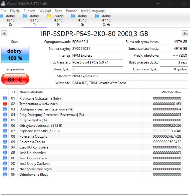 Możecie być też pewni, że zastosowany przez producenta “system chłodzenia” w postaci cienkiego listku grafenu, to zdecydowanie za mało, aby utrzymać w chłodzie tak zaawansowane układy krzemowe. Widać było to już przy zaawansowanych dyskach na PCIe 3.0 i przy praktycznie każdym dysku na PCIe 4.0, więc możemy być pewni, że wszystkie nośniki na PCIe 5.0 wymagają rozbudowanego chłodzenia. To nie tylko gwarantuje stałą wydajność na najwyższym poziomie bez thermal-throttlingu, ale też ogranicza zużycie dysku w czasie pracy.