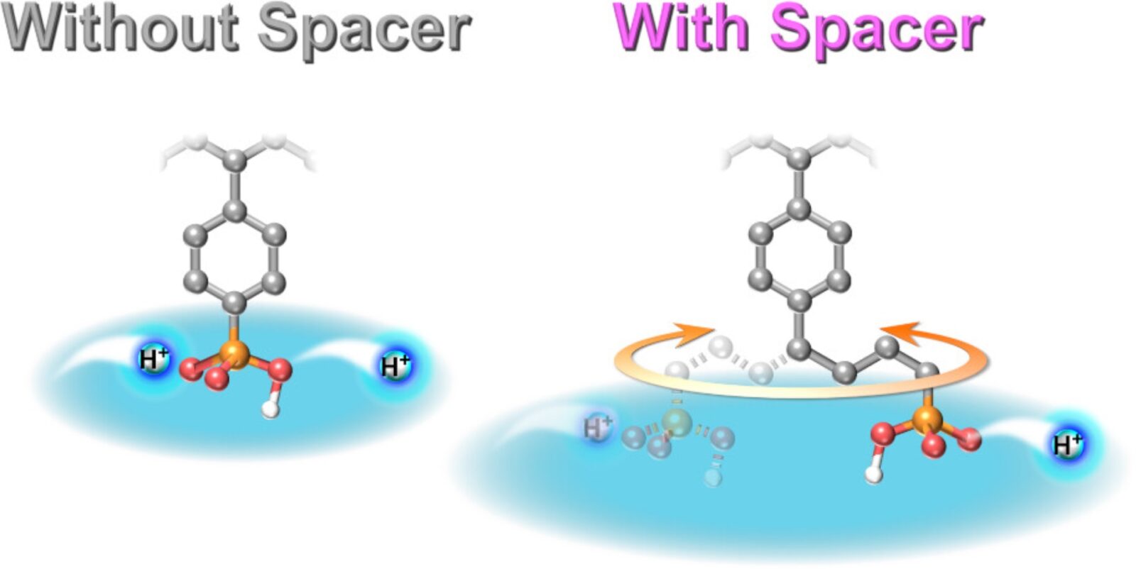 Dotychczas wspomniane materiały borykały się z dwoma głównymi ograniczeniami – niską przewodnością oraz podatnością na degradację w wilgotnych warunkach, co ograniczało ich praktyczne zastosowanie. Aby przezwyciężyć te bariery, zespół naukowców wprowadził hydrofobowe separatory pomiędzy szkielet polimerowy a grupy kwasu fosfonowego. Tego typu modyfikacja strukturalna znacząco poprawiła odporność materiału na wodę, stabilność chemiczną i przewodność, a to zwłaszcza w wysokich temperaturach i przy niskiej wilgotności. Efekt? Przy 120°C i 20% wilgotności względnej nowo opracowana membrana wykazała 40-krotnie wyższą przewodność niż konwencjonalne membrany z polistyrenu fosfonowego oraz 4-krotnie wyższą przewodność niż sieciowane membrany z sulfonowanego polistyrenu.