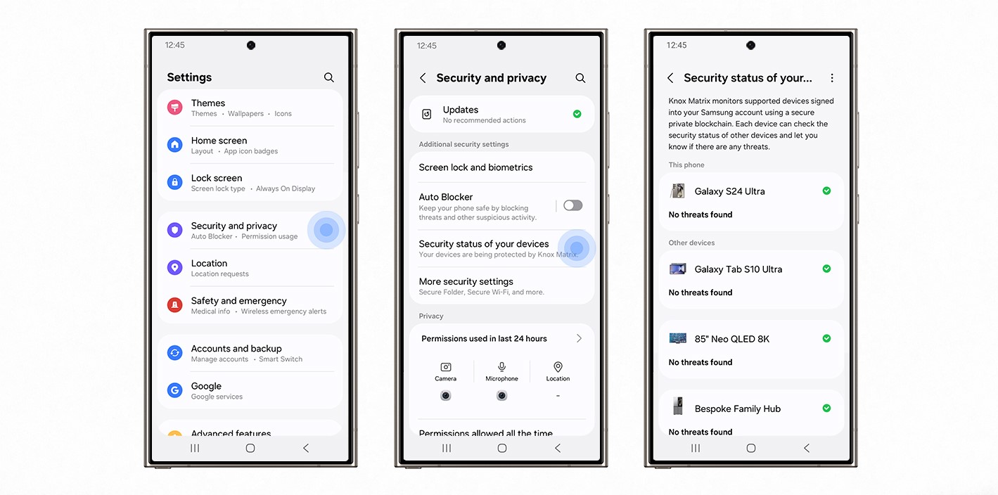 Samsung nie zapomniał też o bezpieczeństwie i prywatności użytkowników sprzętów Galaxy, dlatego najnowszy interfejs One UI zapewnia wielowarstwową ochronę danych osobowych, przejrzystość i zintegrowane ustawienia bezpieczeństwa. Posłuży do tego m.in. Knox Matrix. Jest to rozszerzona ochrona użytkowników, wykorzystująca inteligentne monitorowanie zagrożeń w środowisku zintegrowanych urządzeń producenta i nie chodzi tu tylko o smartfony czy tablety, ale też o sprzęty AGD czy telewizory, których zabezpieczeniami będziemy mogli zarządzać z poziomu nowego pulpitu nawigacyjnego. W ramach usługi dostaniemy też nowe sposoby zarządzania tożsamościami, danymi uwierzytelniającymi oraz zabezpieczeniami tychże danych przy pomocy kluczy hasłowych.