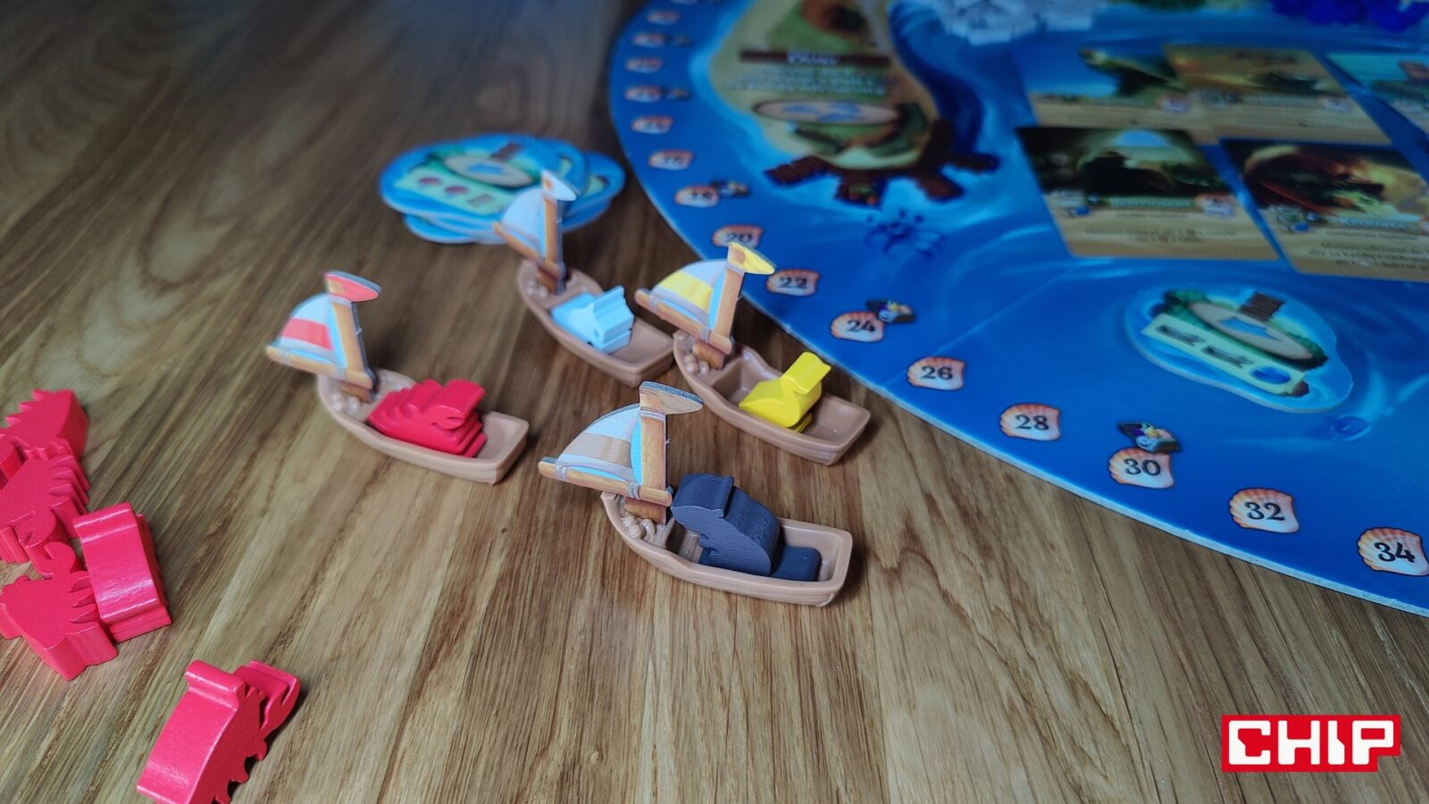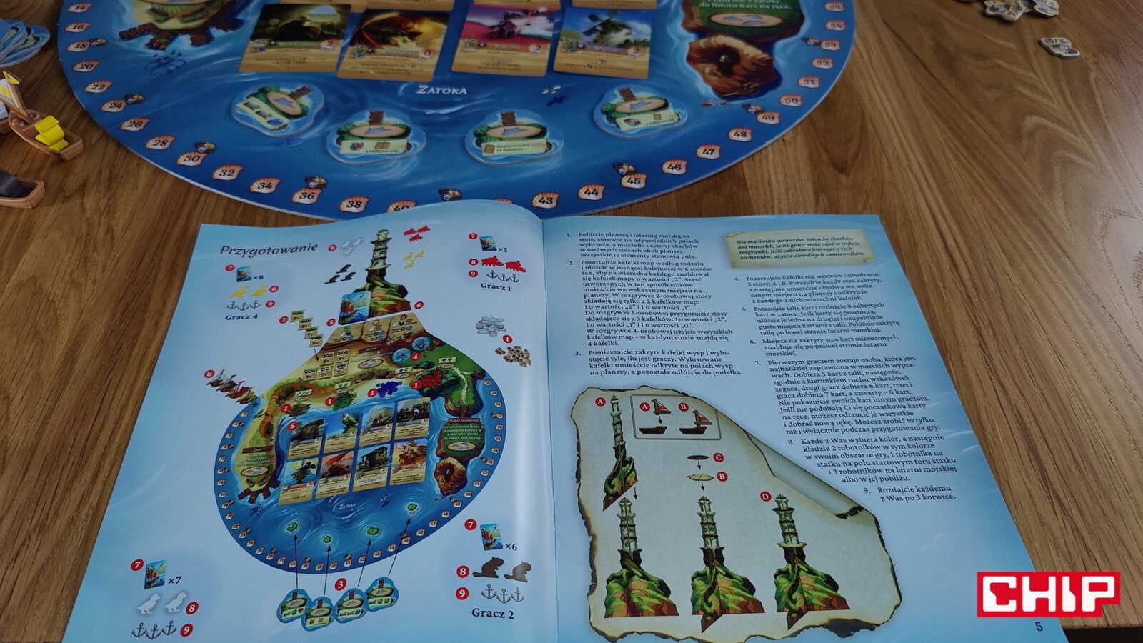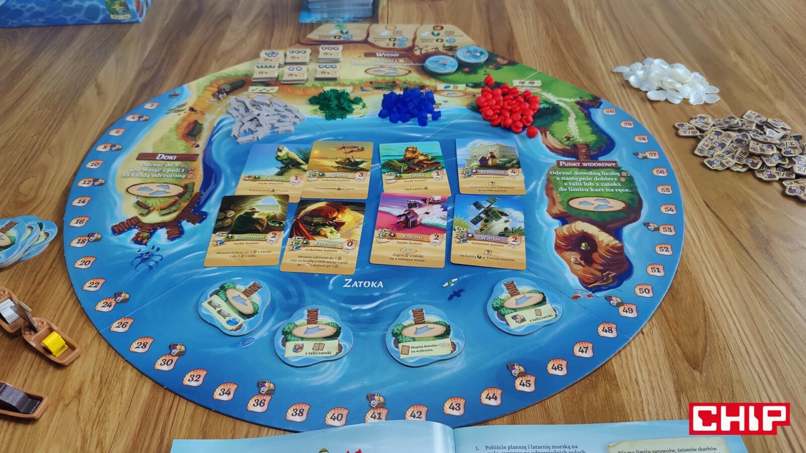 Najciekawszymi elementami zestawu są jednak dla mnie dwie rzeczy o opcjonalnym charakterze. Z jednej strony urozmaicają one wizualnie przygodę, ale z drugiej zajmują tylko niepotrzebnie miejsce na stole. Mowa o latarni, o której równie dobrze można zapomnieć, bo jej rolą jest jedynie utrzymywanie robotników w rezerwie (nic nie stoi na przeszkodzie, aby trzymać ich po prostu obok) oraz wielkiej tekturowej mapie, którą trzeba rozkładać tylko dlatego, że wyznacza zarówno tor poruszania się statków, jak i informuje o potencjalnych akcjach.