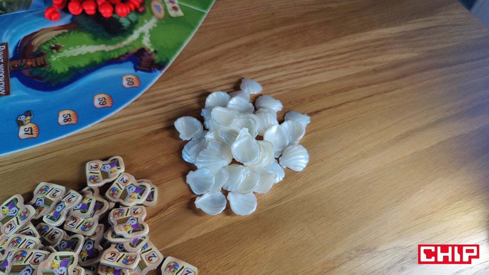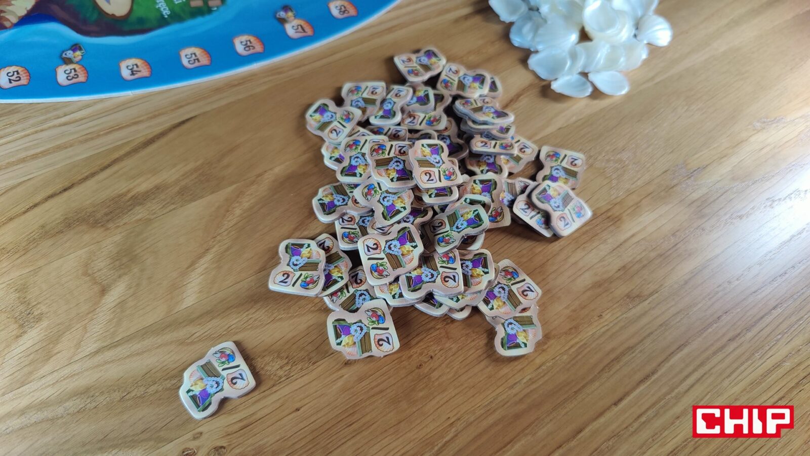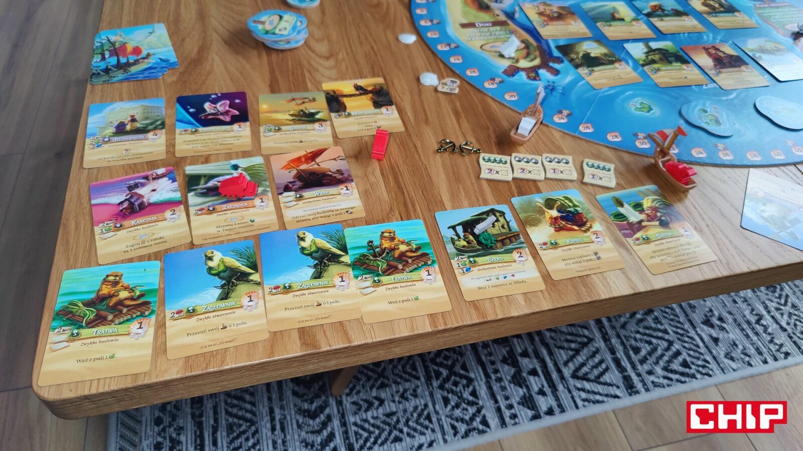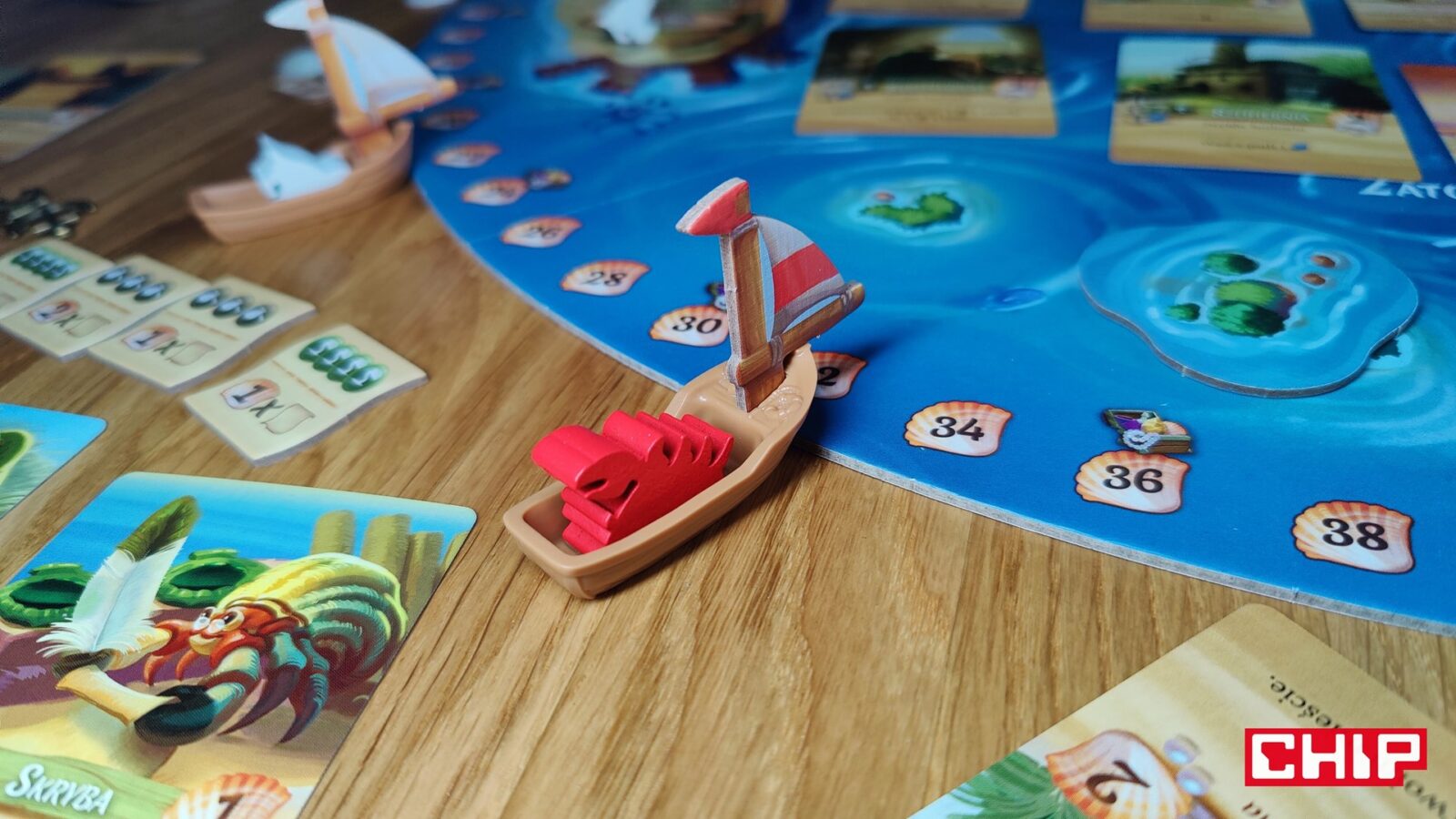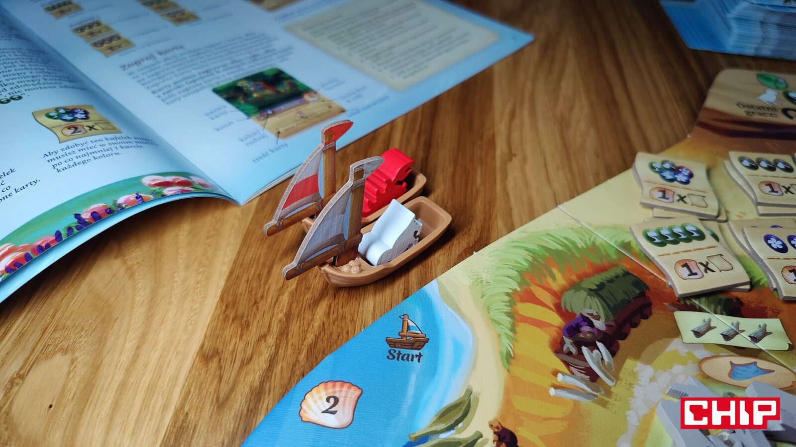 Z perspektywy praktycznej lepiej byłoby, gdyby producent zamienił tę planszę na pojemniki na surowce, prosty tor punktowy i kilka dodatkowych żetonów informujących o akcjach. Jestem jednak przekonany, że twórcy po prostu chcieli uczynić z Everdell: Dalekobrzeg pewnego rodzaju wizualną ucztę i przygodę, a nie pusty wyścig na punkty. Widać to nie tylko po tekturowej planszy i latarni, które ewidentnie będą budzić wyobraźnię młodszych graczy, ale też po statkach, bo te również można schować do pudełka i poruszać się wyłącznie pionkami, które wskazują konkretne pola znacznie precyzyjniej. Szczytem niskiej praktyczności jest jednak składana z czterech części tekturowa latarnia, na której podstawkach trudno umieścić sześć, a co dopiero dwanaście figurek robotników.