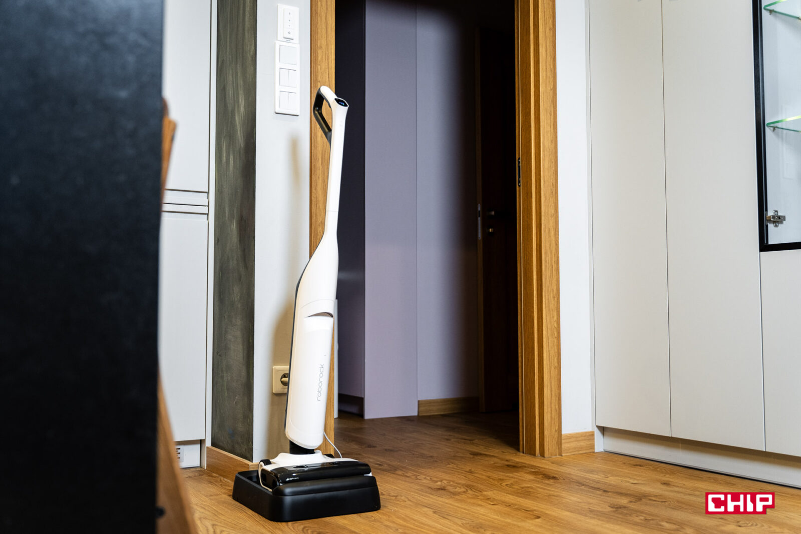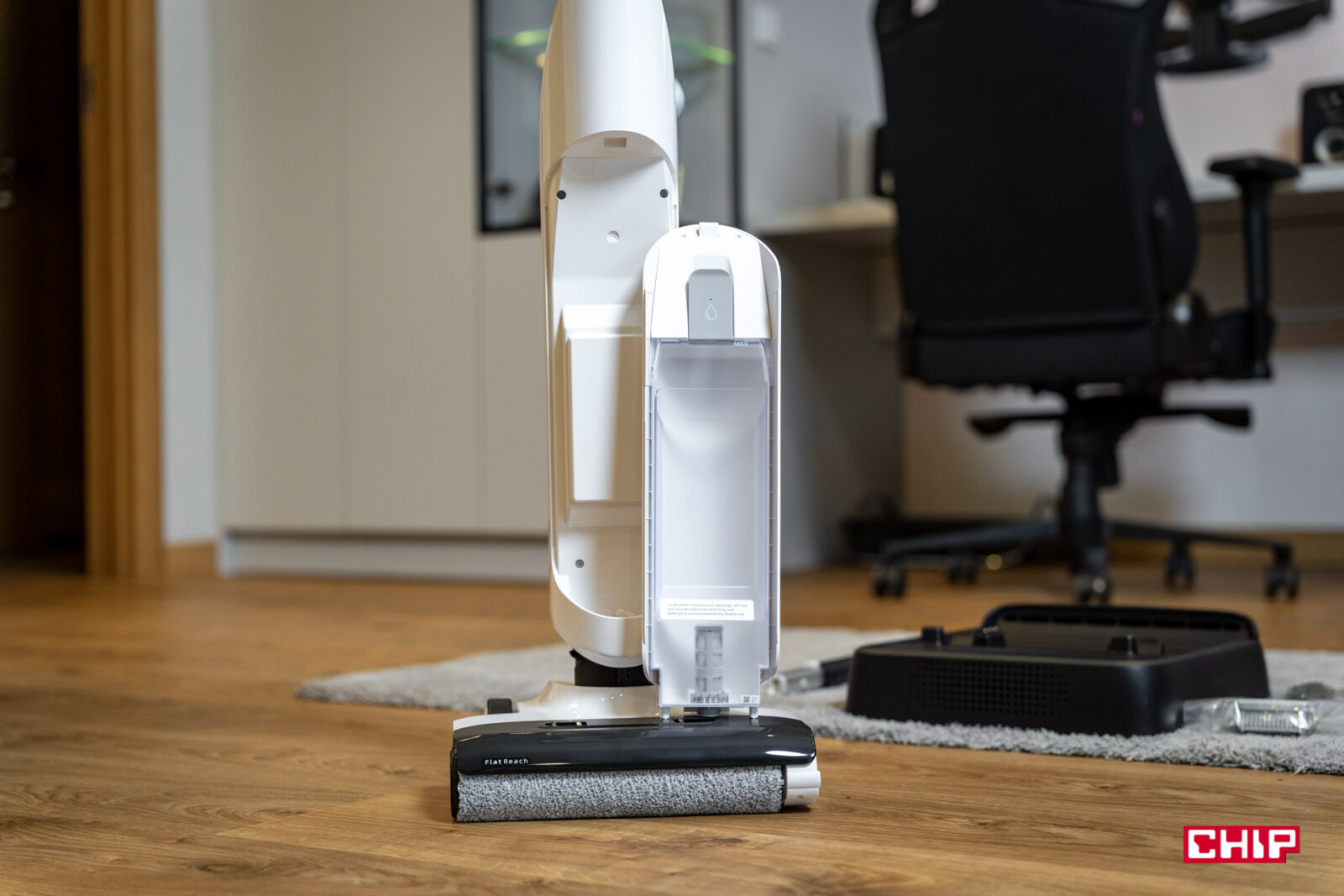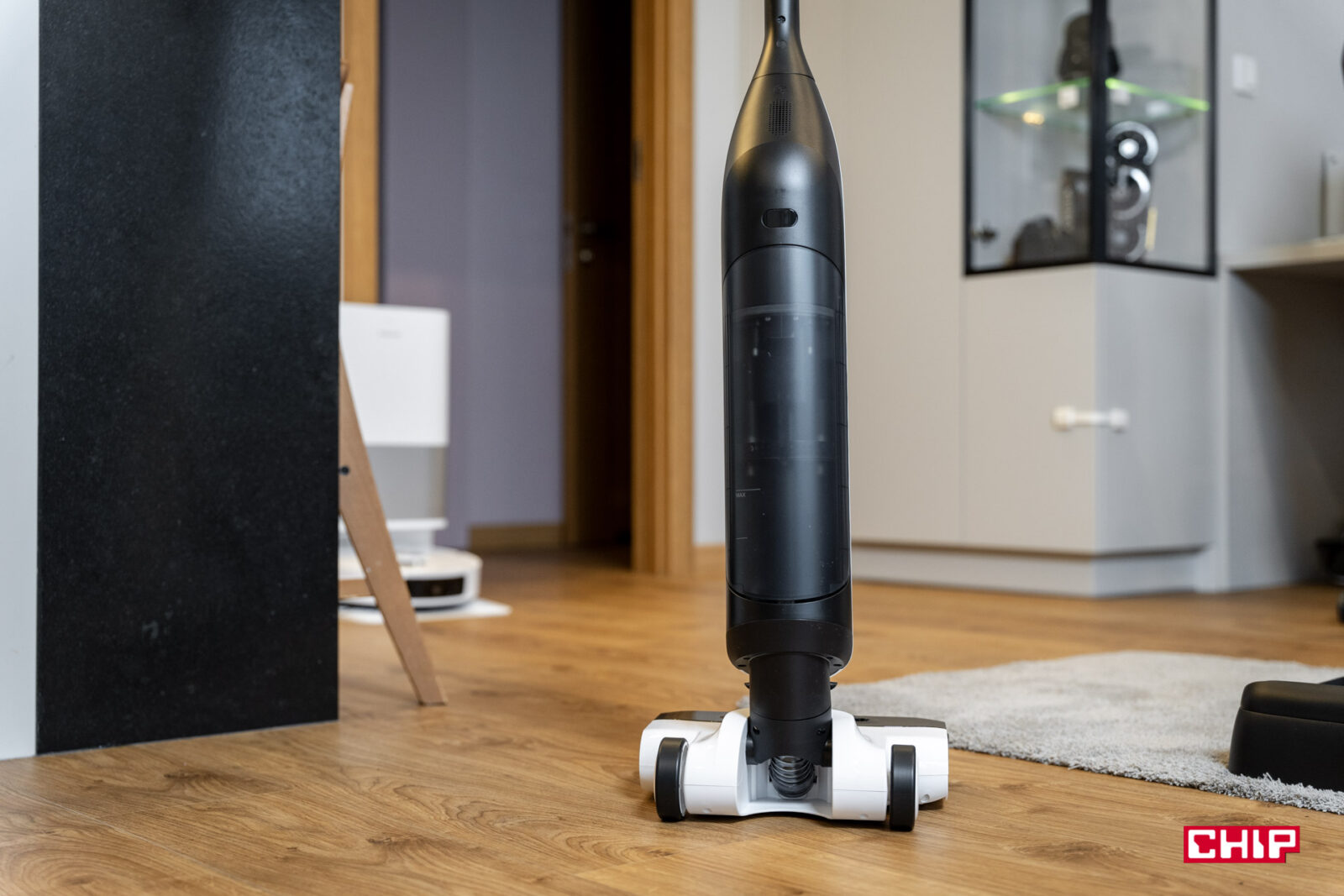 Całość uzupełnia prosta stacja dokująca, w której odbywa się samoczyszczenie oraz ładowanie. Ogromny plus za to, że kabel zasilający możemy owinąć za przygotowane zaczepy i przełożyć go przez niewielkie wcięcie po lewej lub prawej stronie konstrukcji, w zależności od potrzeb. Taka mała rzecz, a robi wrażenie.