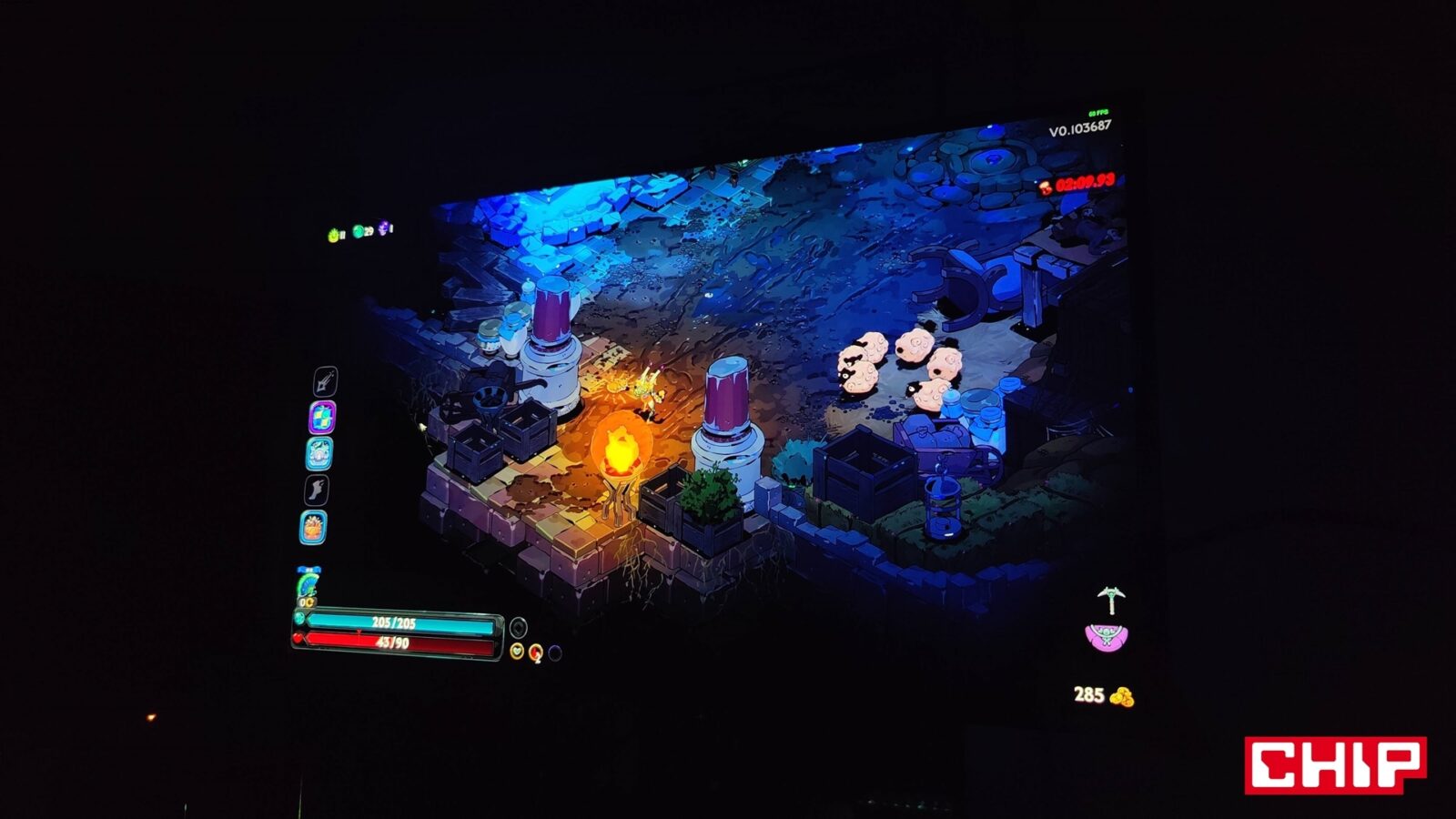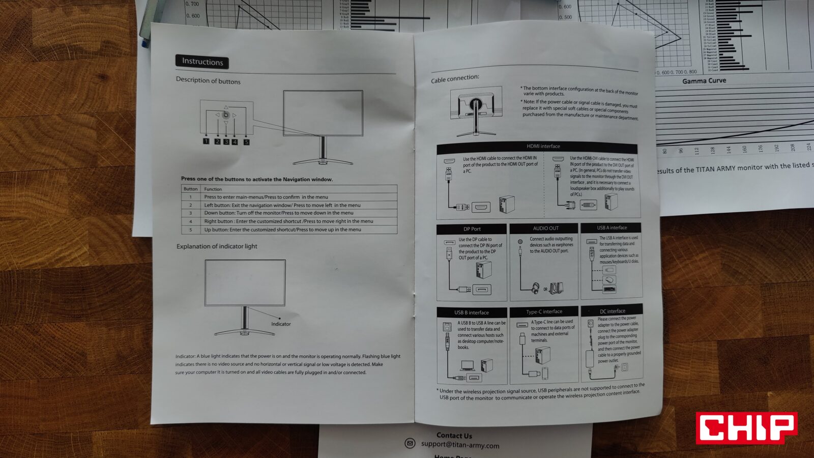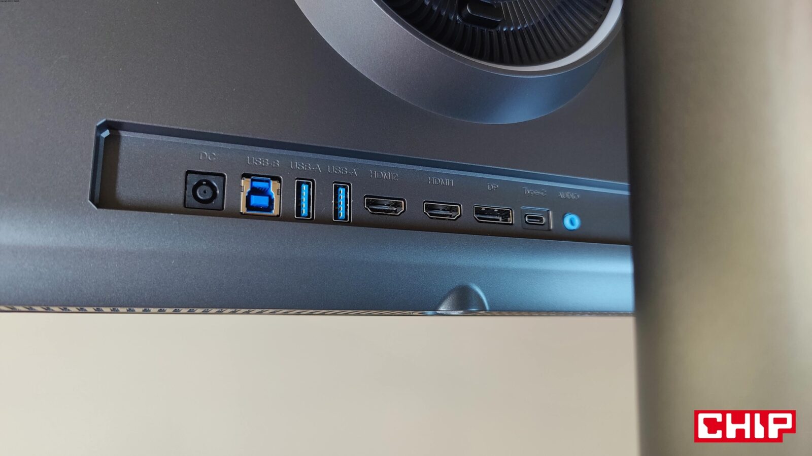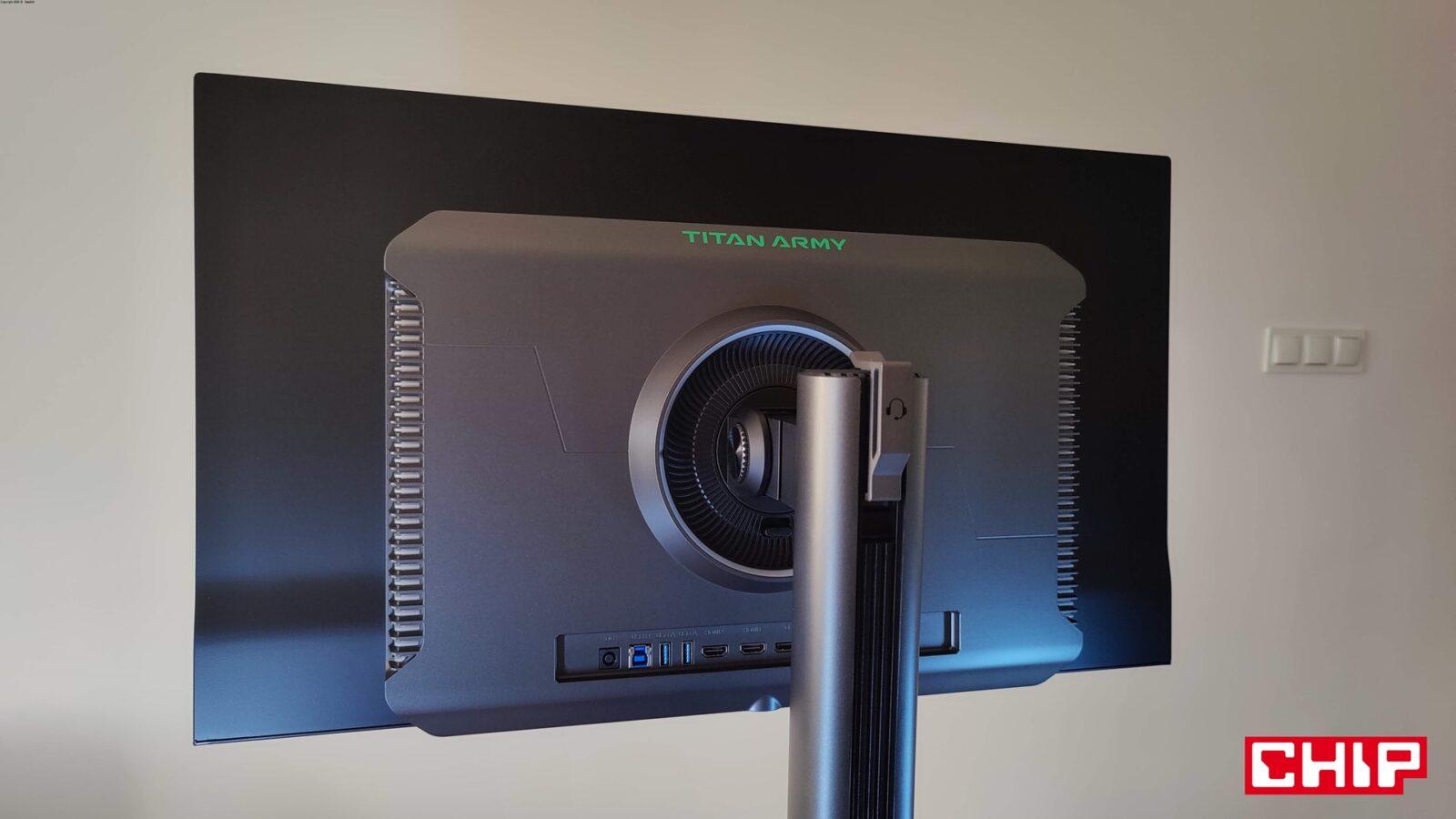 Niech jednak nie zmyli was ta niepozorna obudowa, bo tak się składa, że kwestię chłodzenia Titan Army miało rozwiązać wzorowo, stawiając na m.in. arkusze grafenu, które poprzez obniżenie temperatury, niwelują ryzyko wystąpienia martwych pikseli. Poza tym ten monitor ma jeszcze dwa elementy godne uwagi, bo zarówno podświetlany delikatnie na niebieski joystick na środku dolnej krawędzi, jak i zestaw portów na tyle, które zostały ustawione nie “w dół”, a “do tyłu”, co wygląda gorzej, ale za to ułatwia podpinanie sprzętów.