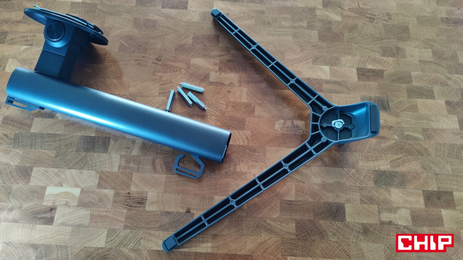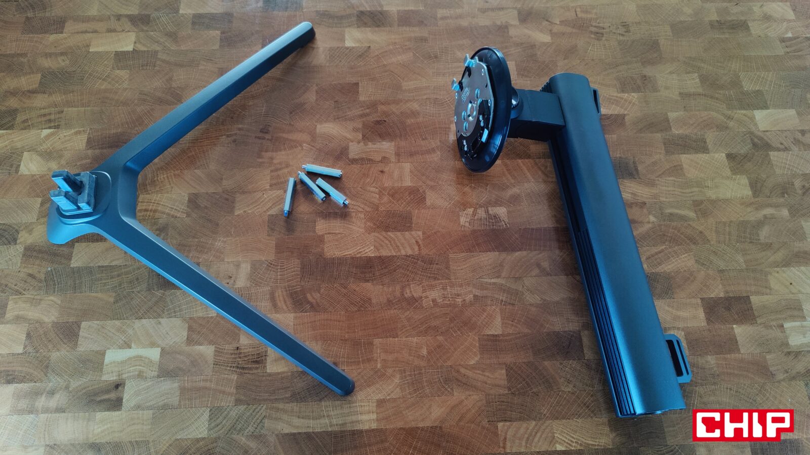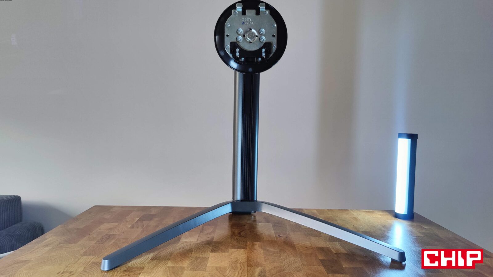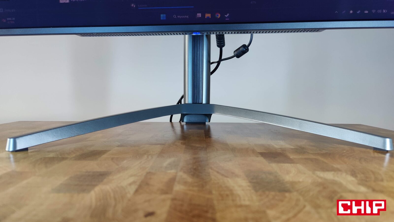 Już przy samym unboxingu model G27T8T może z jednej strony zachwycić designem. Nie tylko dlatego, że cyberpunkowy charakter wręcz wylewa się z jego projektu, ale też przez cienki ekran (poza sekcją na środku) oraz rozbudowaną i regulowaną podstawę z metalu, w której znalazł się zarówno składany wieszak na słuchawki, jak i uchwyt na przewody. Szkoda tylko, że uchwyt jest jeden, a poprowadzenie przewodów tak, aby nie było ich widać z przodu, jest znacznie utrudnione. Nie byłoby, gdyby producent zastosował dwa uchwyty horyzontalne – jeden w aktualnym miejscu, a drugi regulowany tak, aby poprowadzić przewody najpierw z monitora do uchwytu znajdującego się wyżej, a następnie niżej i już za biurko.