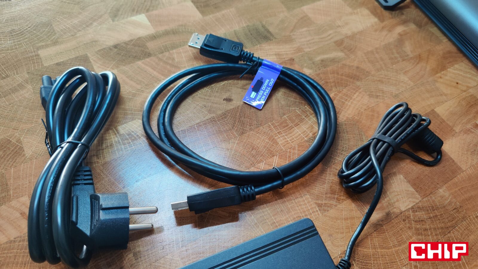 Wielkie pudło, rączka na szczycie ułatwiająca transport, a wewnątrz cała masa grubego styropianu, chroniącego zarówno monitor, jak i jego dwuczęściową podstawę oraz pozostałe elementy zestawu. Mowa o certyfikatach potwierdzających kalibrację profilu sRGB i AdobeRGB, instrukcji obsługi w języku angielskim, adapterach w formie śrub wkręcanych na tył monitora, sygnałowym przewodzie DisplayPort o długości metra oraz zasilaczu z długim, cienkim przewodem oraz odpinanym przewodem do gniazdka. W tej cenie przydałby się tylko i wyłącznie dłuższy przewód DP oraz dodatkowy HDMI.