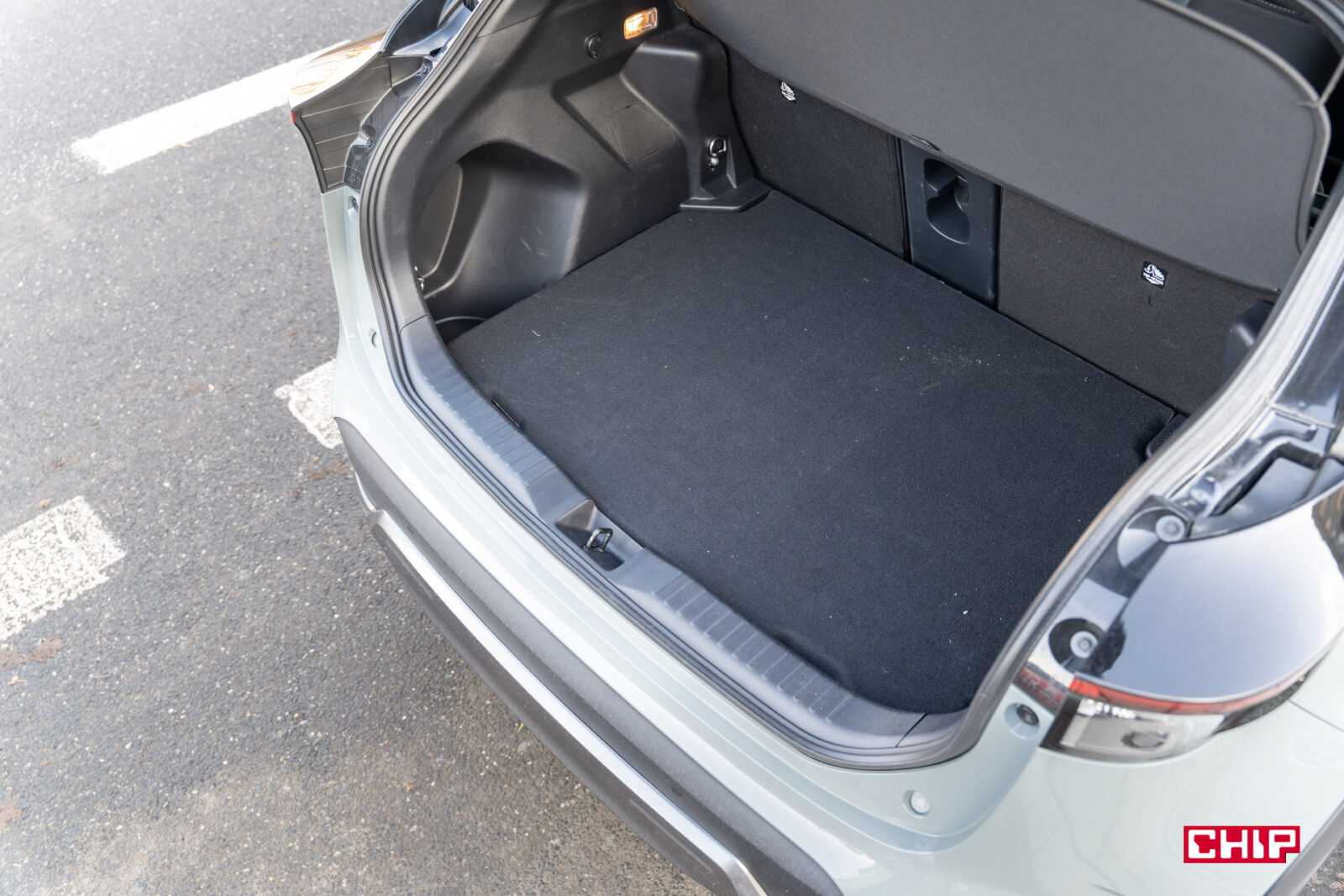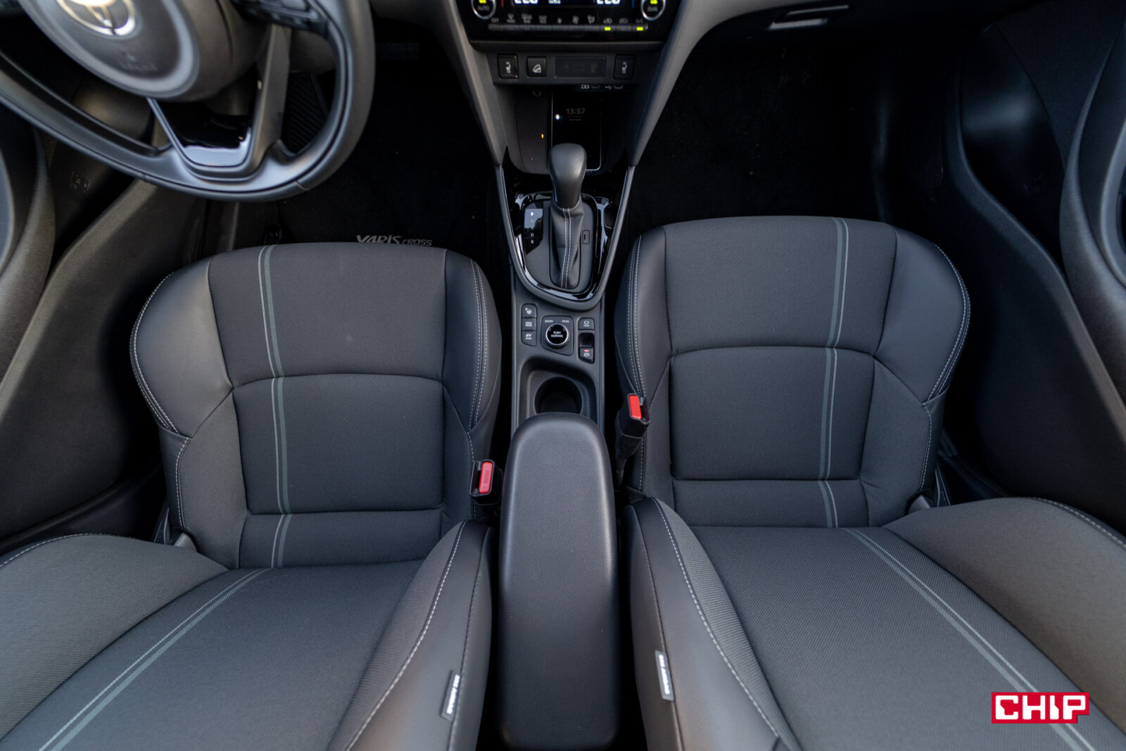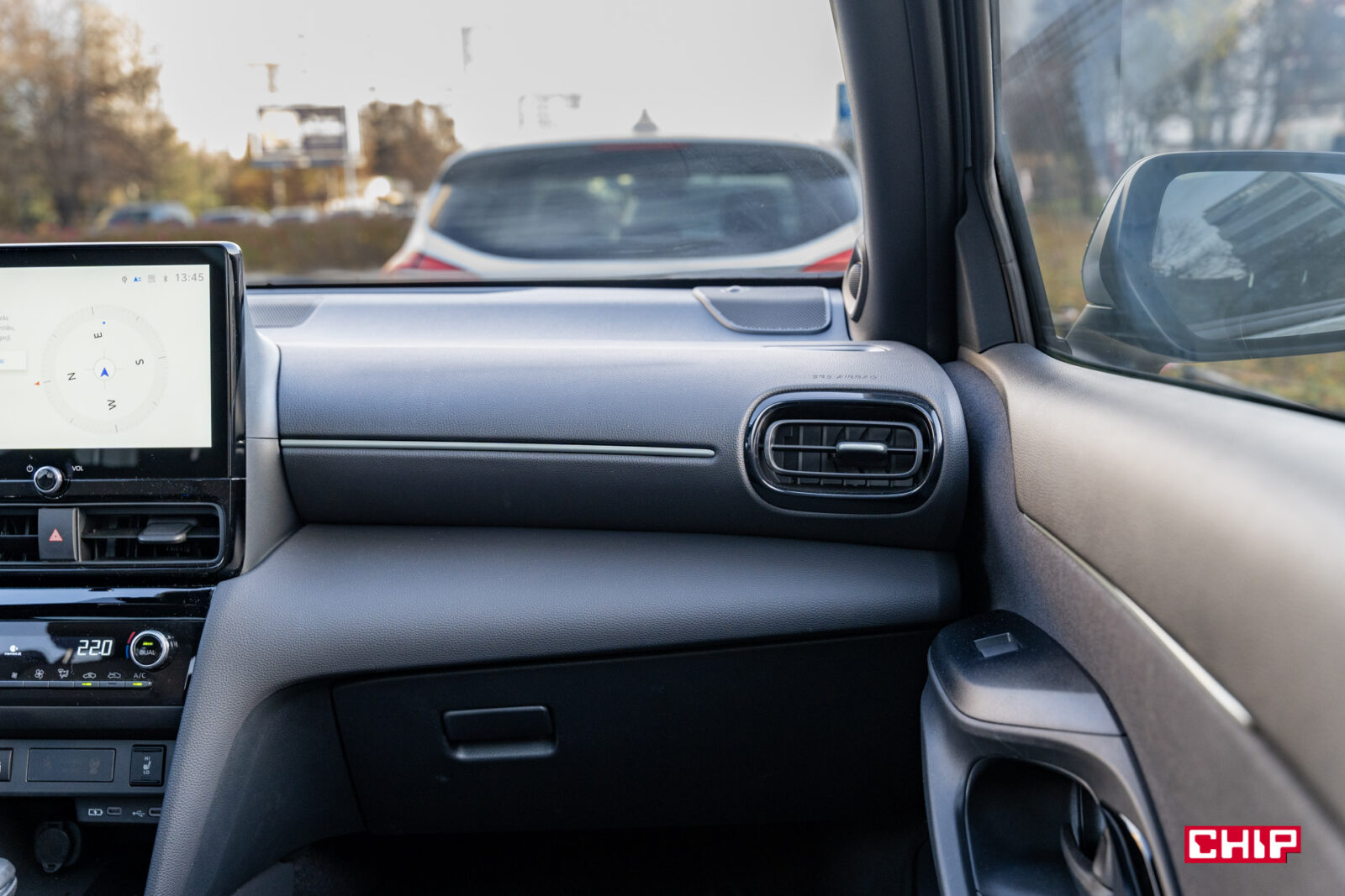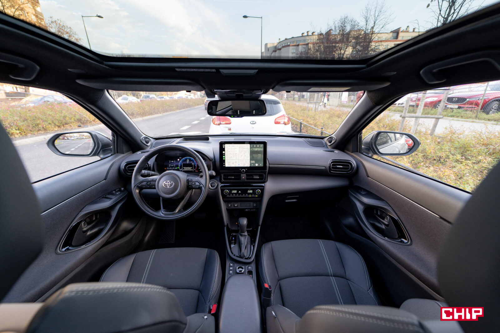 Wróćmy teraz do Toyoty C-HR. Jest ona od Yarisa Cross dłuższa o 16,5 cm i szersza o 6,7 cm. Niby niedużo, ale jednak, a można odnieść wrażenie, że to Yaris Cross jest znacznie większym autem. We wnętrzu C-HR czujemy się dosłownie otoczeni i zamknięci w swoim kojcu, a klaustrofobiczne uczucie potęgują nieduże szyby. W Yarisie Cross jest zupełnie odwrotnie i jak na swoje wymiary, zaskakuje przestronnością wnętrza.