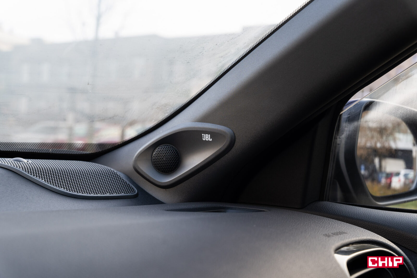 Opcjonalne nagłośnienie JBL jest przyzwoitej jakości. W mieście możemy się cieszyć dynamicznym brzmieniem z nieprzesadzonym basem. W trasie… nie do końca, bo przy prędkościach autostradowych Yaris Cross bardzo cierpi i praca silnika połączona z wyraźnie słyszalnym oporem powietrza skutecznie zagłusza muzykę.