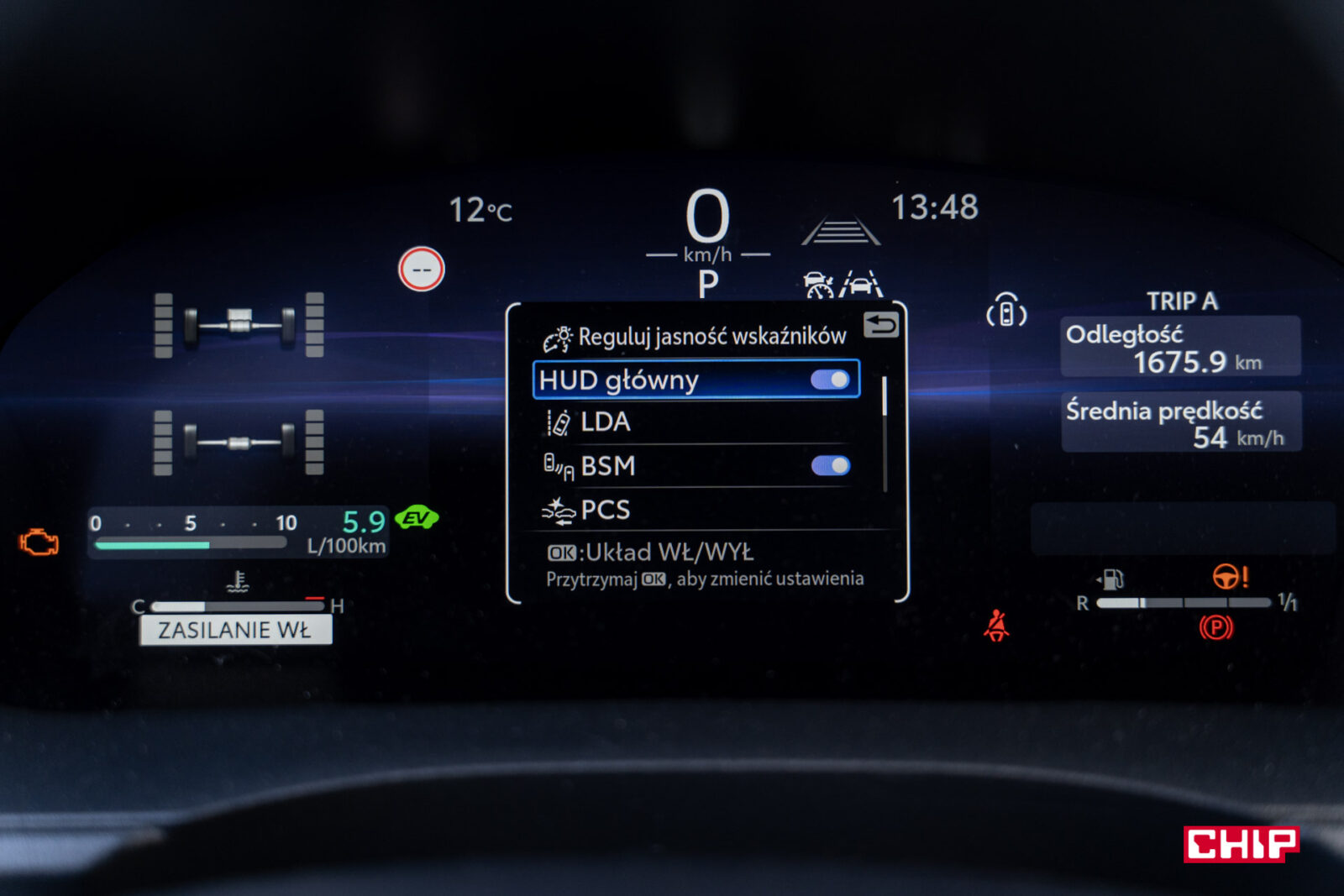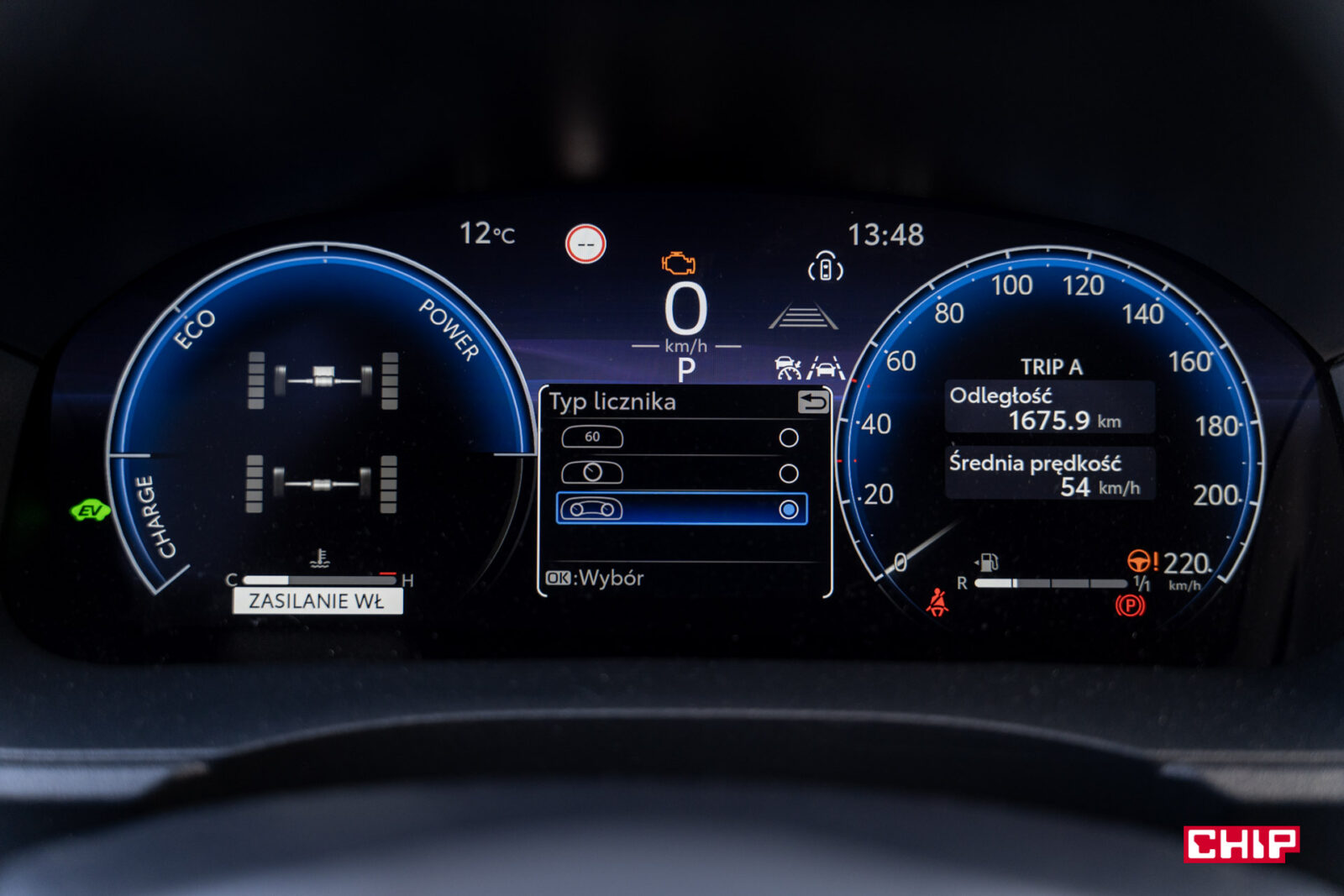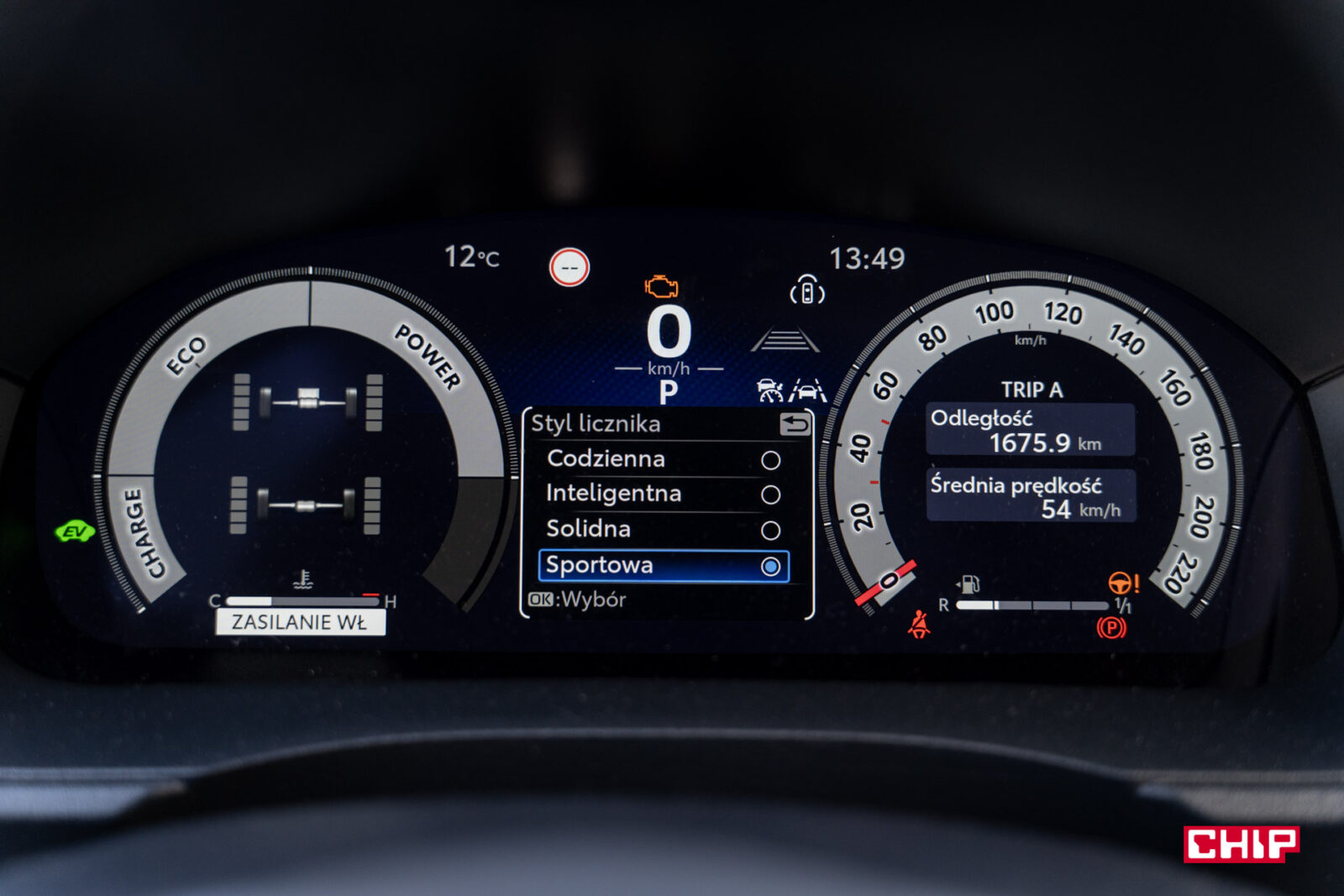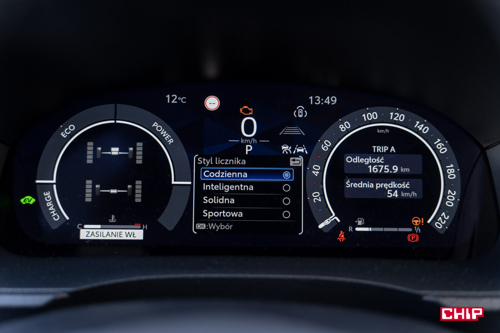To zdecydowanie najlepszy z elementów multimedialnych, obok systemu kamer, jakie znajdziemy w nowych Toyotach. Ekran kierowcy jest wysokiej jakości, prezentuje dopracowane i miłe dla oka grafiki i pozwala na sporą personalizację jeśli chodzi o wygląd zegarków i wyświetlane informacje dodatkowe. Ogromny plus i później dowiecie się, dlaczego to w tym modelu istotne, za możliwość włączenie klasycznego, a nie hybrydowego obrotomierza. Oczywiście większość kupujących uzna to za zbędną rzecz, ale jeśli ktoś lubi wiedzieć, na jakich obrotach jedzie, to będzie na pewno z tego zadowolony.
