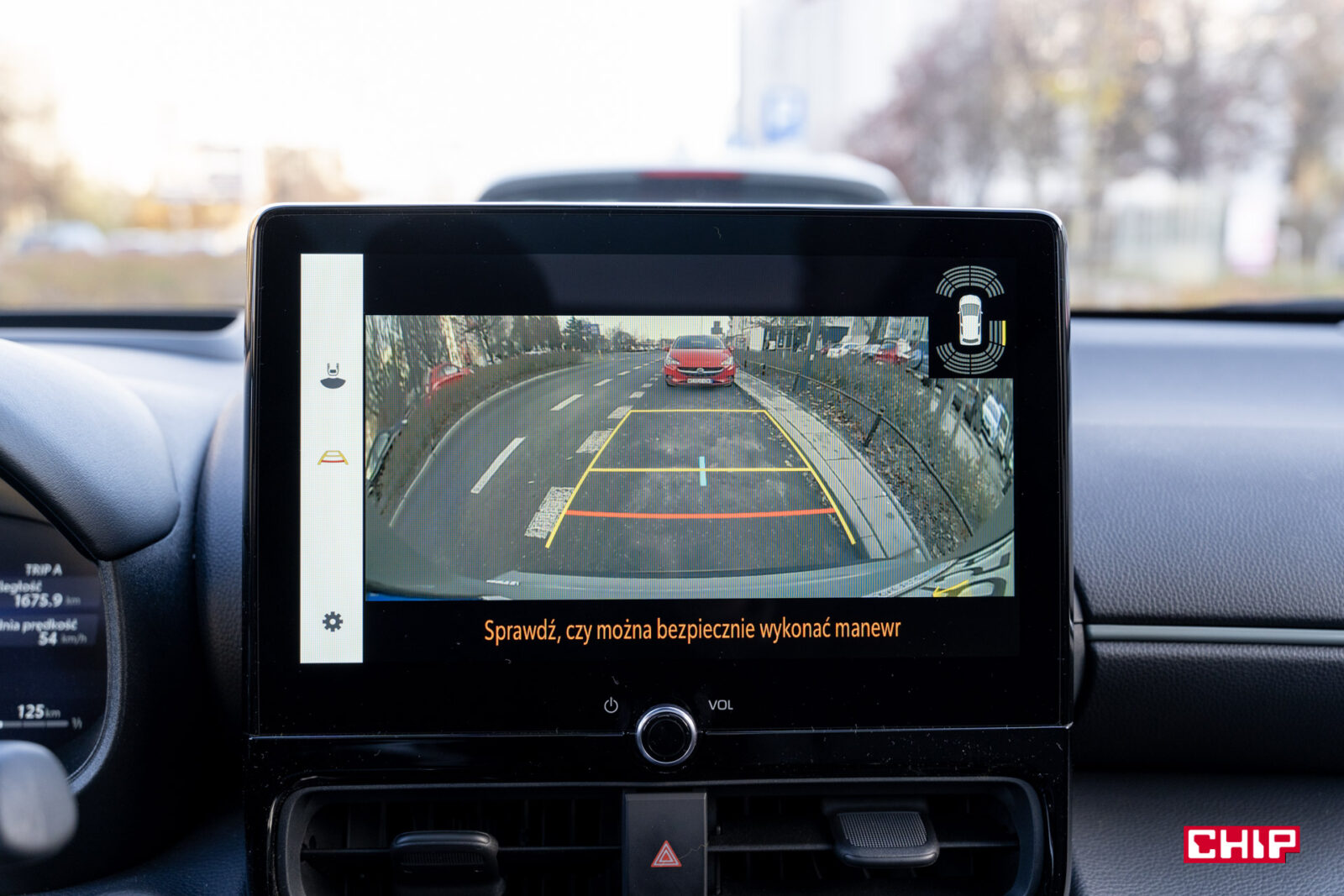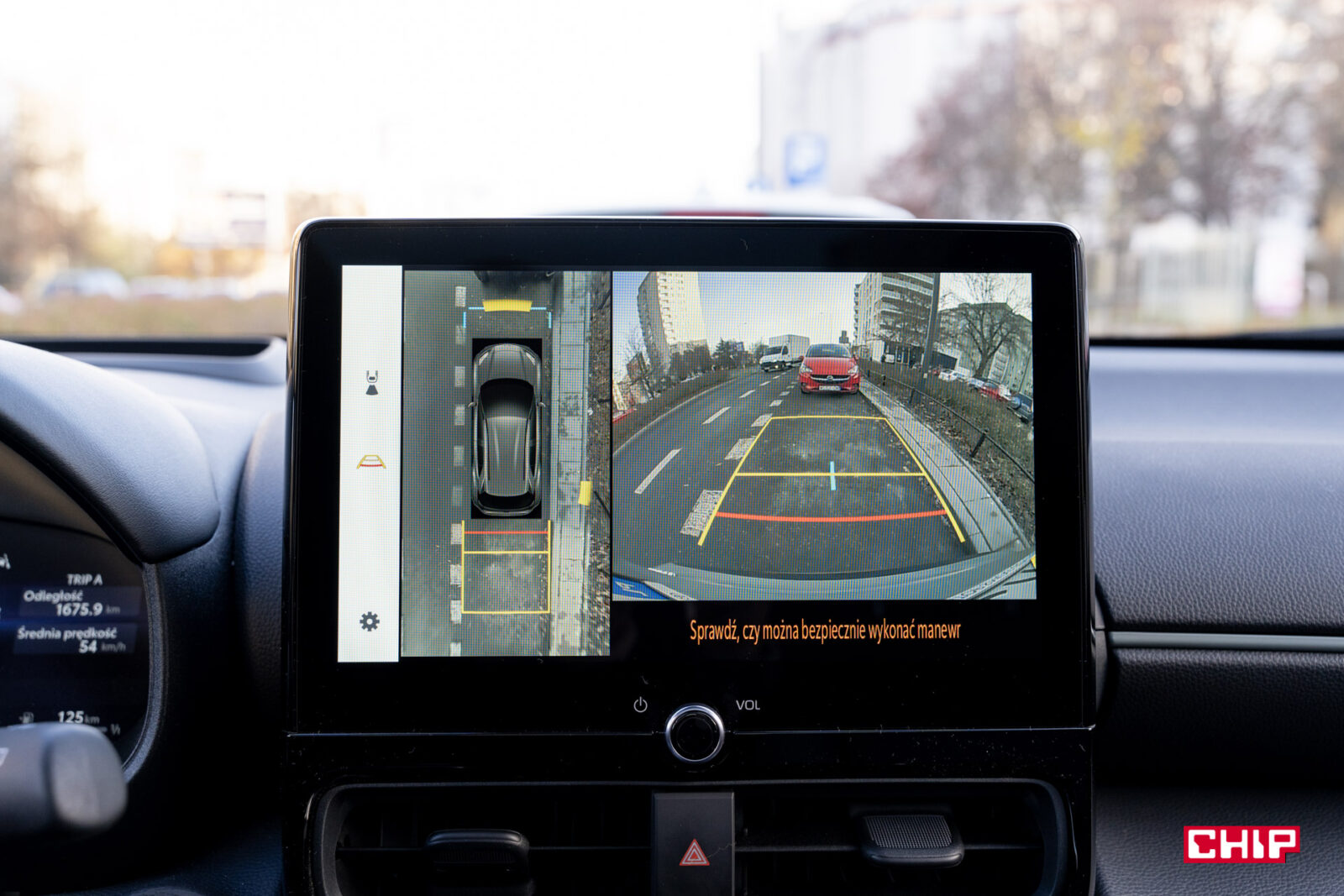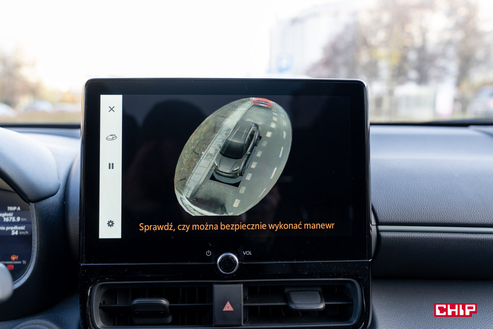 Toyota Yaris Cross w każdej wersji jest wyposażona w kamerę cofania, co jest miłym i przydatnym dodatkiem, a system kamer 360 to opcja lub standard dla wariantu Premiere Edition. Podobnie jak w droższych modelach Toyoty, przydatny jest przezroczysty widok auta, co znacznie poprawia orientację w otoczeniu. Obraz jest przyzwoitej jakości, również w słabym oświetleniu, a linie pomocnicze działają wzorowo.