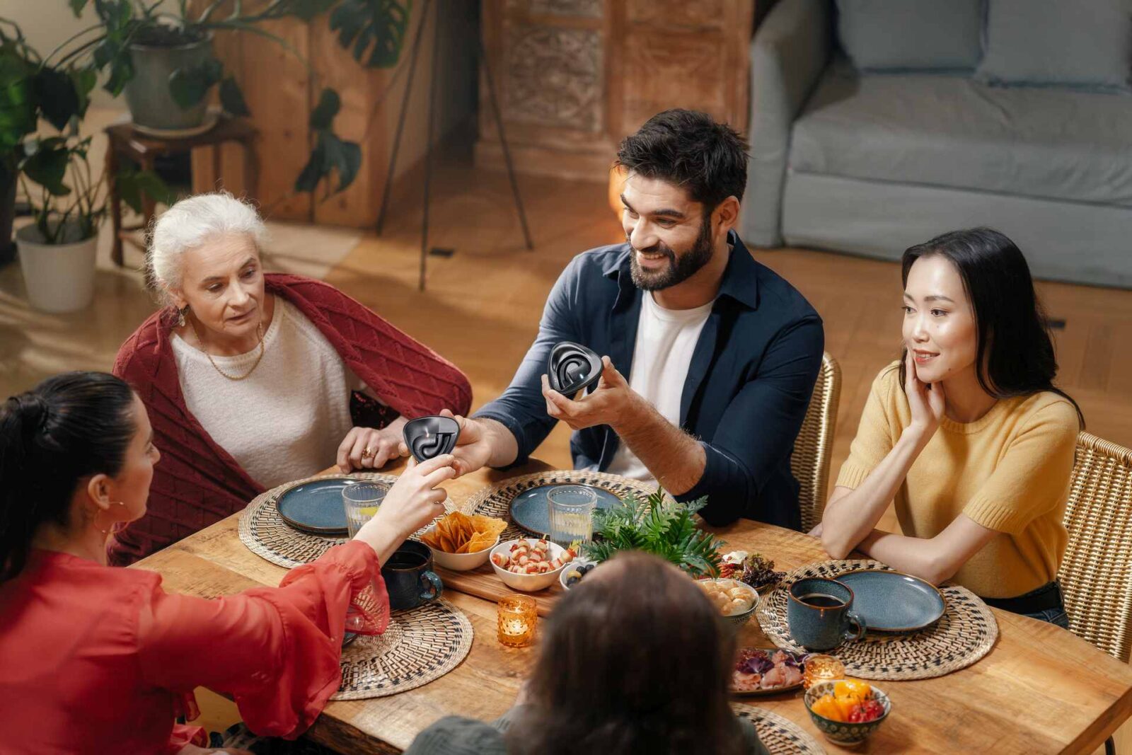 Vasco Translator E1 to słuchawki bezprzewodowe, które dzięki konstrukcji zawieszanej od górnej części ucha powinny pasować każdemu. Jako, że nie wkładamy ich do ucha, możemy się łatwo nimi wymieniać bez obawy o higienę. Na co dzień będziemy przechowywać je w dwuczęściowym etui ładowanym przez złącze USB-C. Każda z jego połówek zawiera słuchawkę i, co ciekawe, możemy je odczepić od siebie, by przekazać jedną połówkę drugiej osobie.